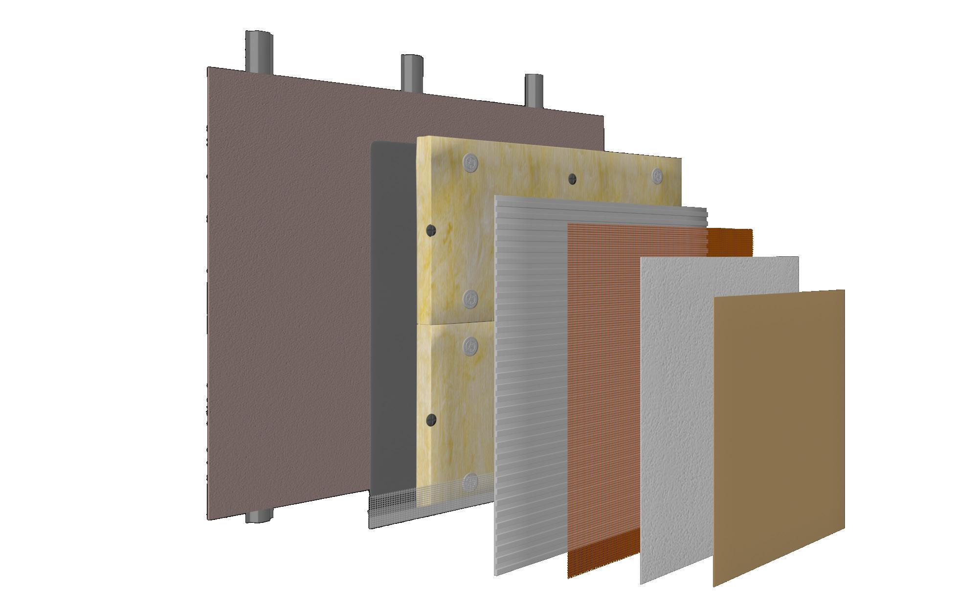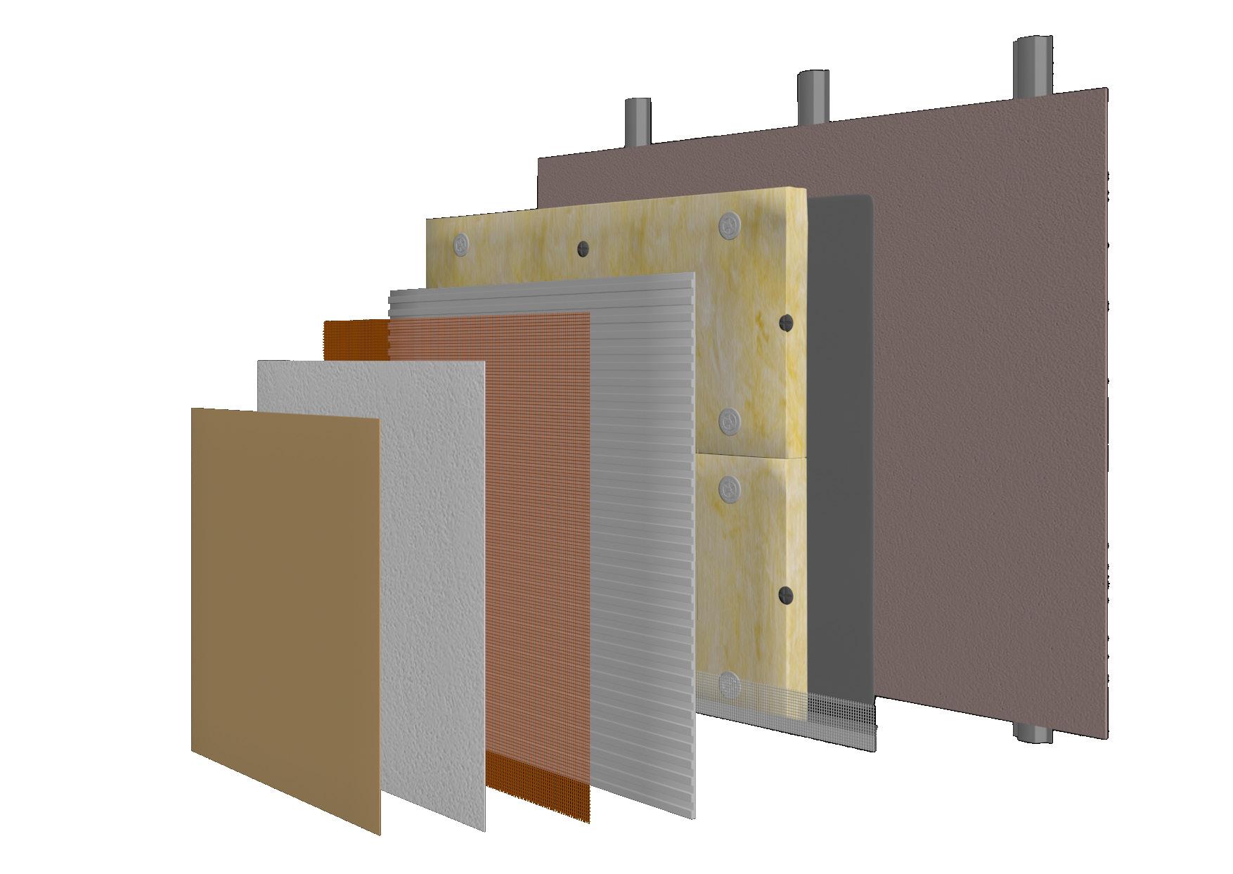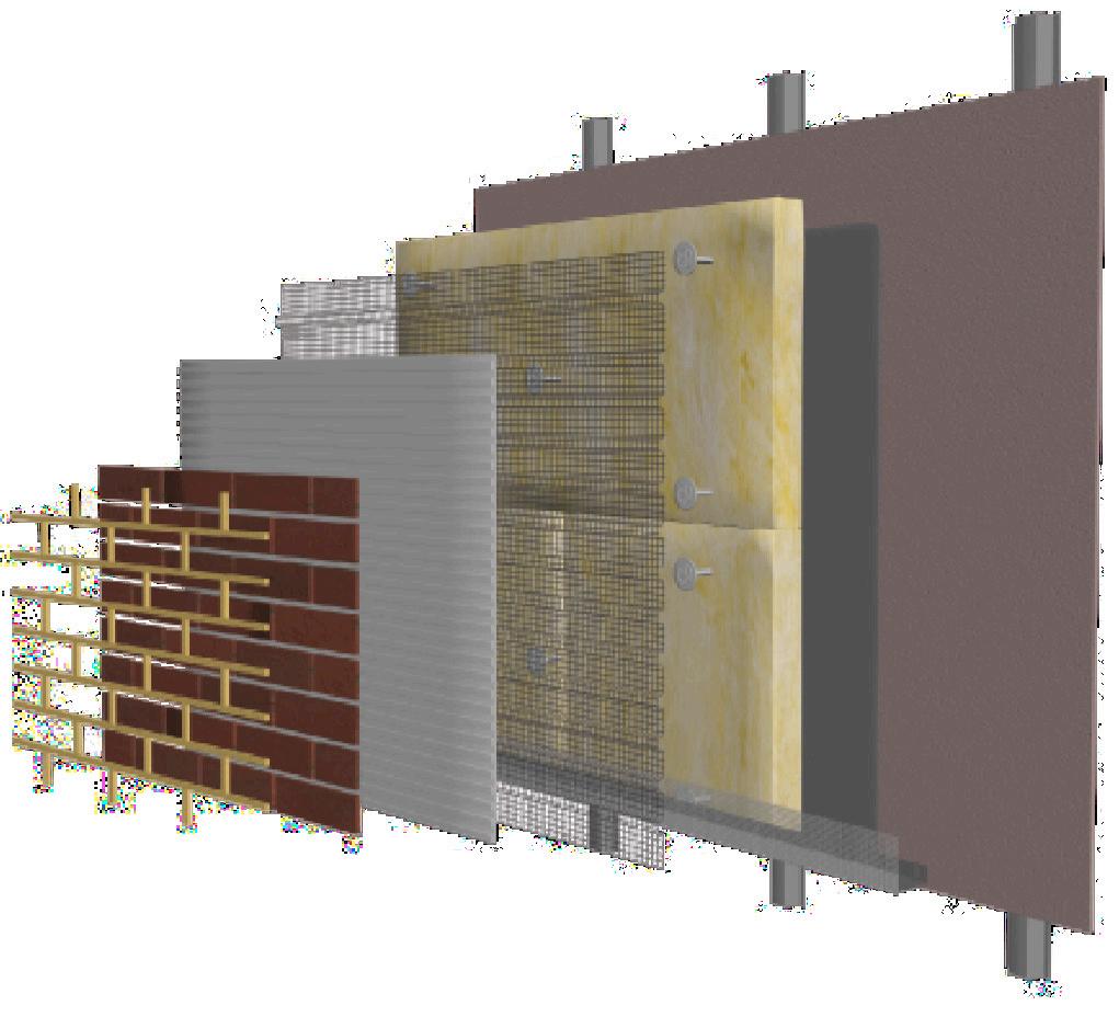 The presumption for the installation of the Mineral Wool & Mineral Render is that the carrying substrate is a sheathing board� These will typically be attached to either timber or steel frames, offering both weather protection for the structural elements, and additional structural support The sheathing board will normally be attached at 600mm centres to ensure an extremely robust substrate, capable of holding the insulation and render installation Most sheathing boards offer basic weather and fire protection.