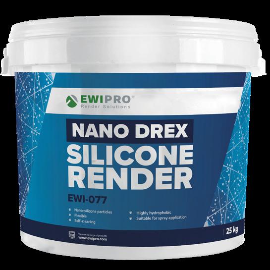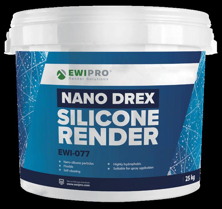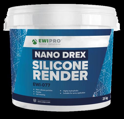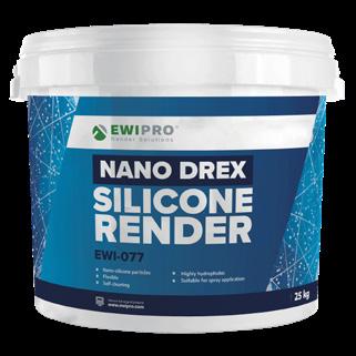 Nano Drex Silicone Render is our most advanced thin-coat Silicone Render, offering unmatched performance regarding flexibility, breath-ability and hydrophobic properties; it flexes with a building’s natural movements, repels water when encountered with rain and lasts for years to come Formulated using nano-silicone technology, Nano Drex Silicone Render also actively prevents problems with organic growth on the external walls of your home, ensuring no future issues with dampness or mould What’s more, owing to its hydrophobic properties, Nano Drex Silicone Render is ideal for use in areas that are highly exposed to organic matter
