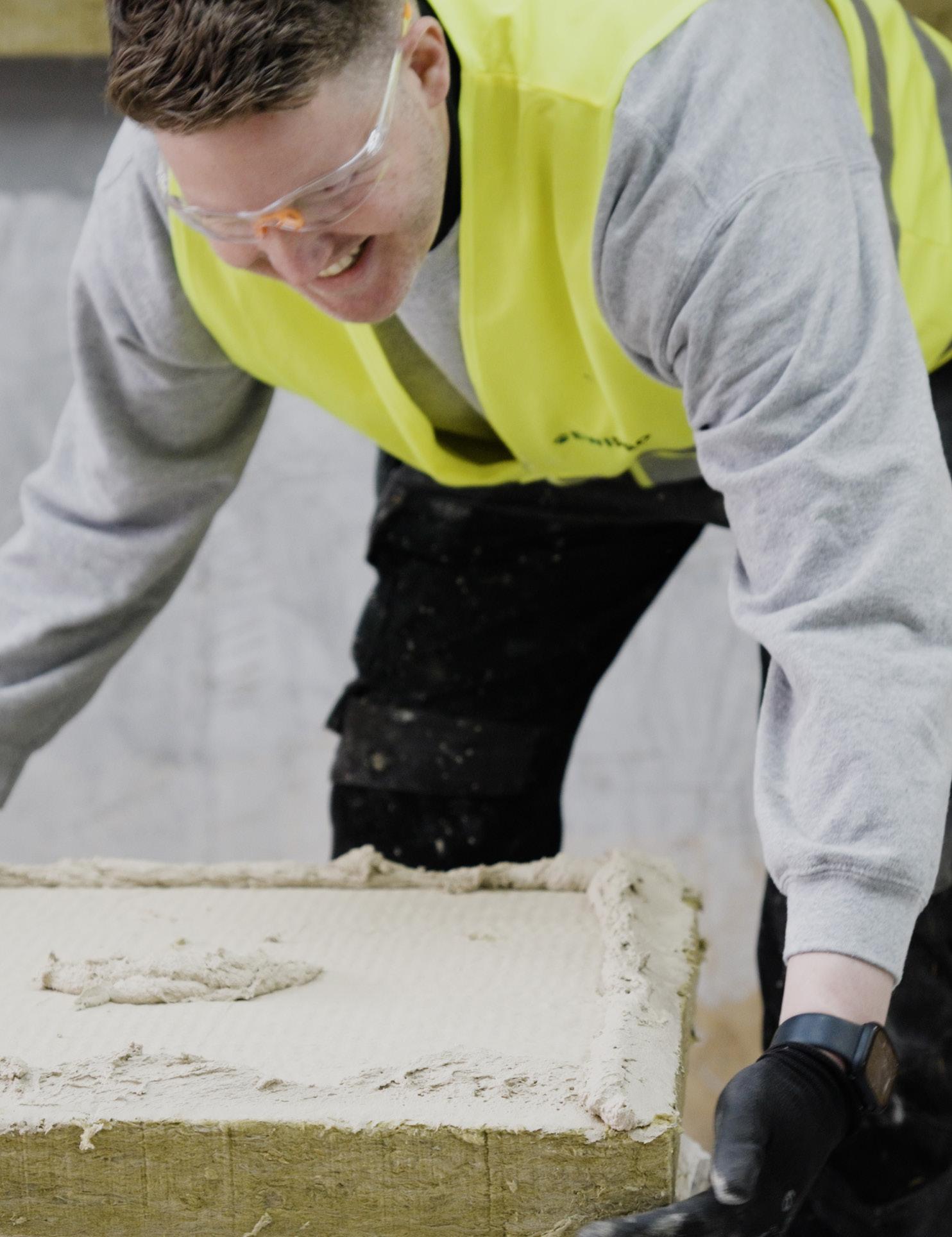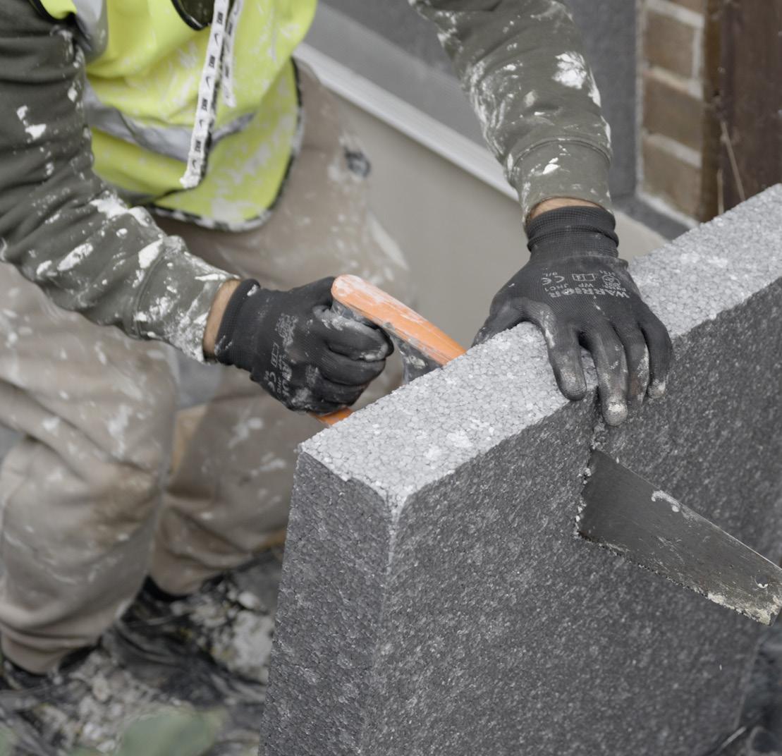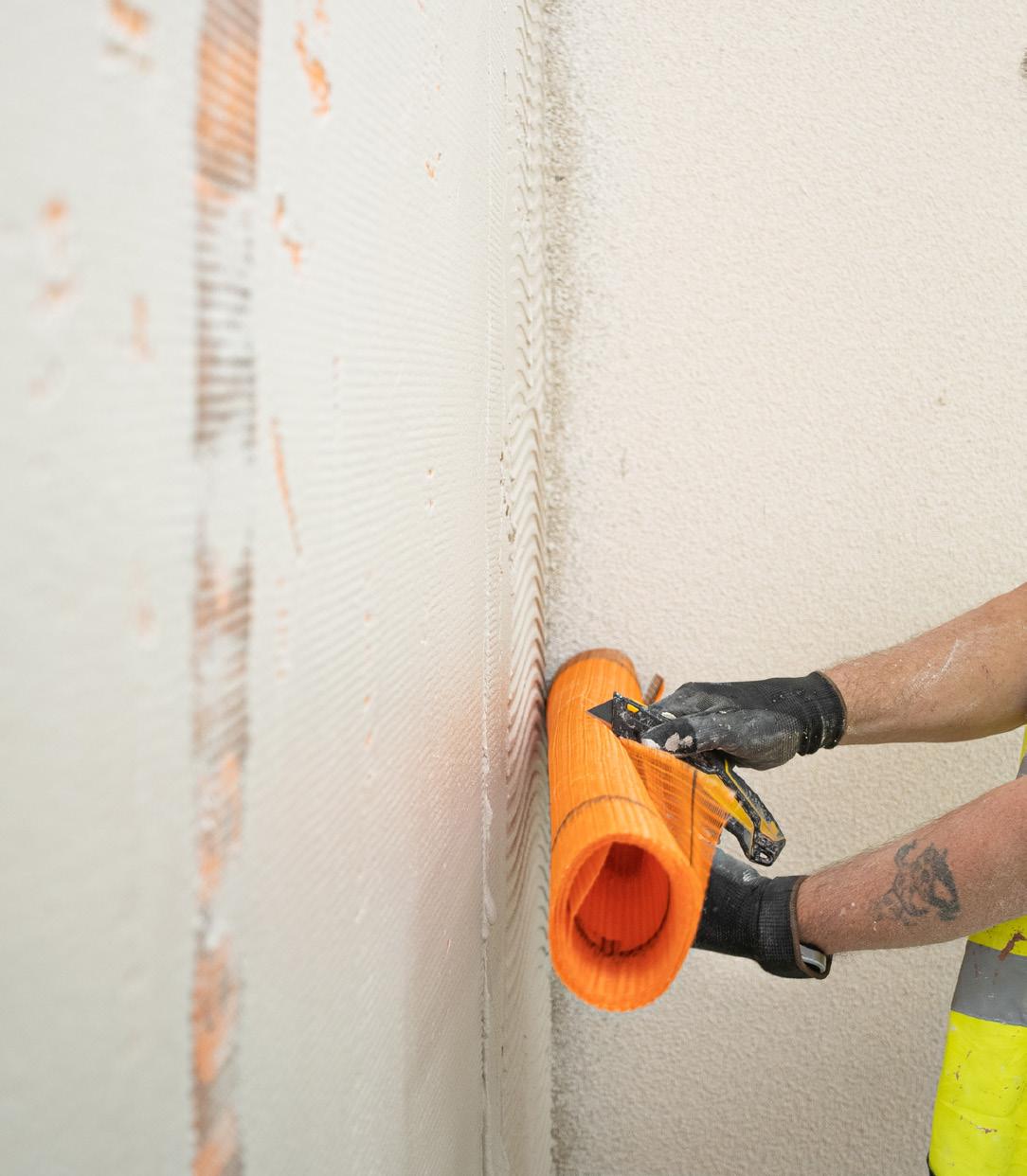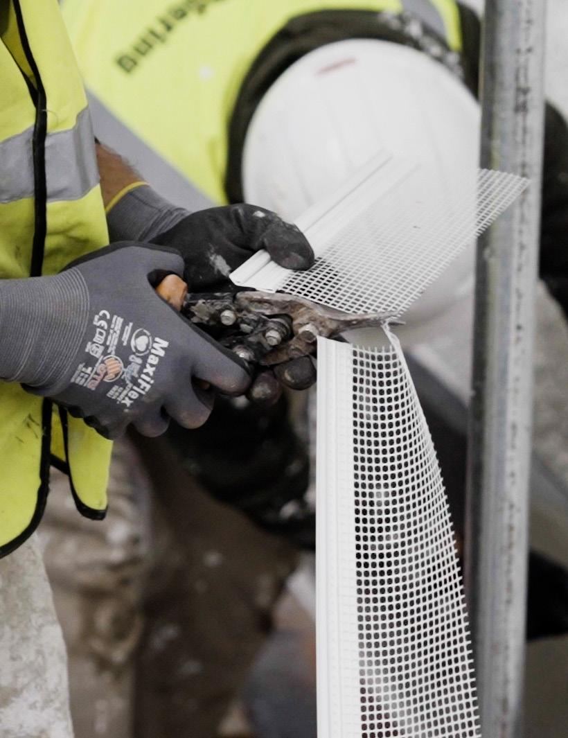 The Mineral Wool insulation boards should be attached to the wall in a staggered formation At the corners, it is important to interlink the insulation from the two sides When installing Mineral Wool insulation around window and door openings, it is important that the joints between boards are not in line with these openings This will prevent cracks appearing in the future For best results and ease of installation, we recommend the use of Lintel Mesh Corner, which helps strengthen this area There is very little room for correction with the Mineral Wool boards It is therefore important to ensure that the boards are aligned correctly both horizontally and vertically, with no gaps This is best achieved using a spirit level