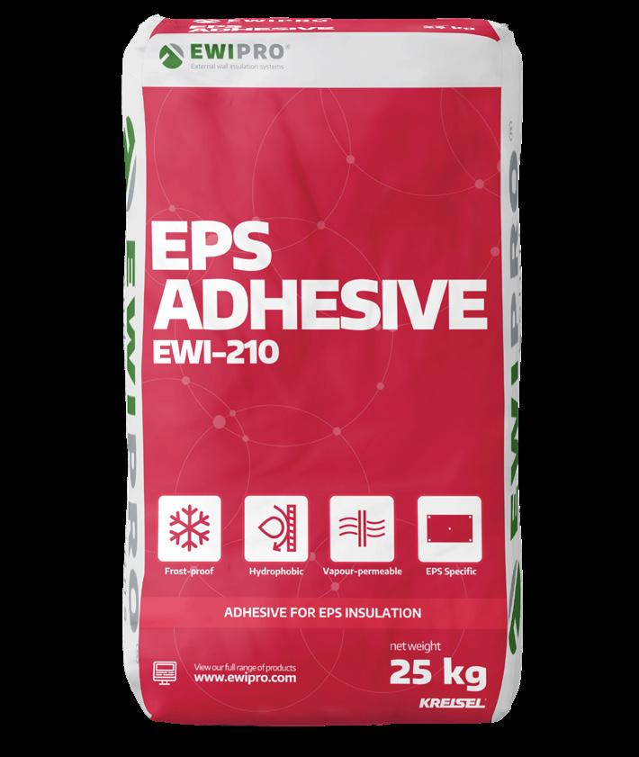 EWI-210 EPS Adhesive is a cement-based adhesive, used within the EWI Pro EPS insulation system for securing EPS boards to substrates The EPS Adhesive is highly durable, quick-drying and has excellent frost resistance properties