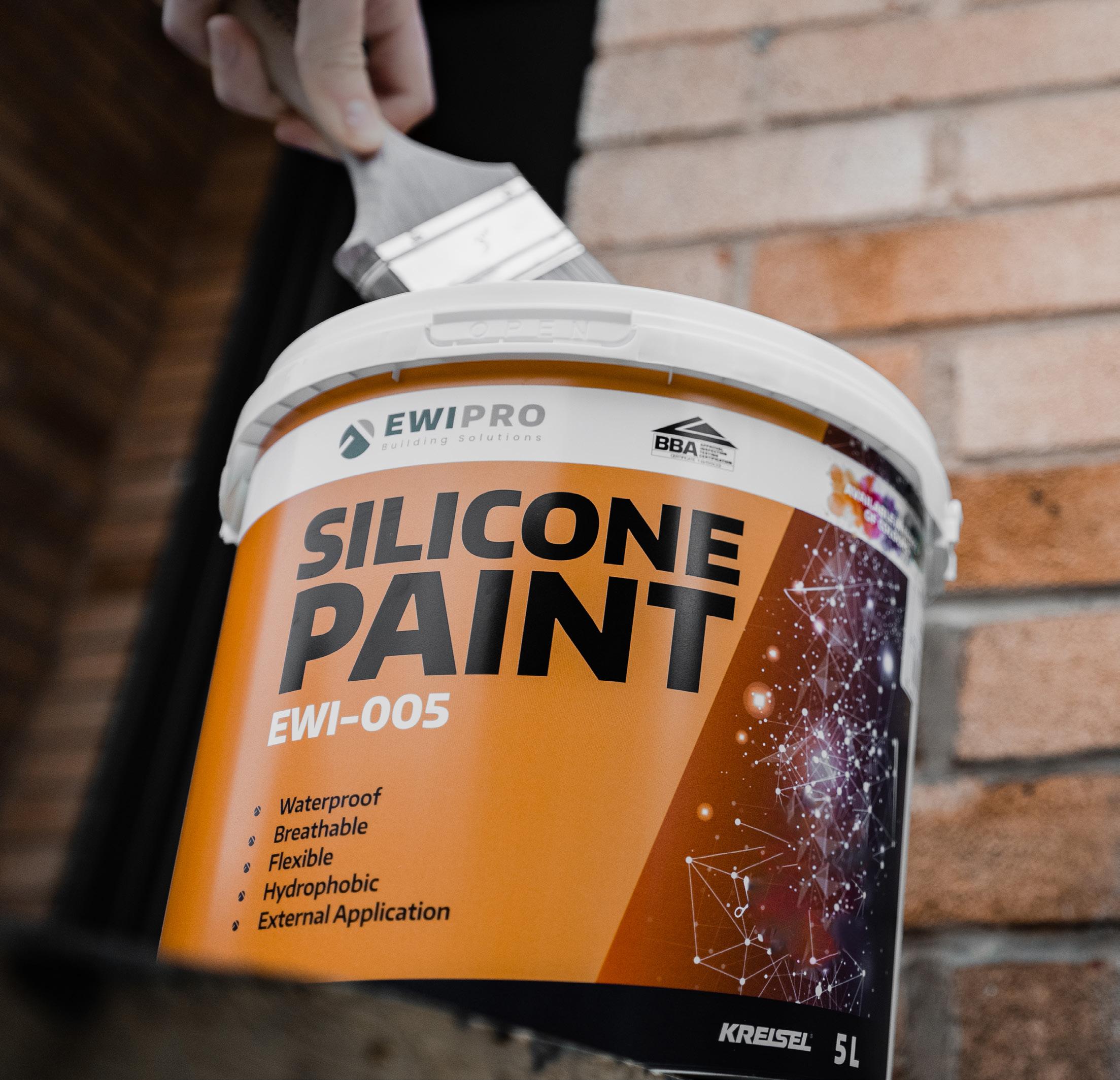 Silicone Paint is a ready to use masonry paint. It offers a durable, waterproof decorative finish that resists environmental pollutants. Silicone Paint can be used externally or internally, either as the final stage in the Mineral Render system or to decorate the internal walls of a property especially in wet rooms or bathrooms
