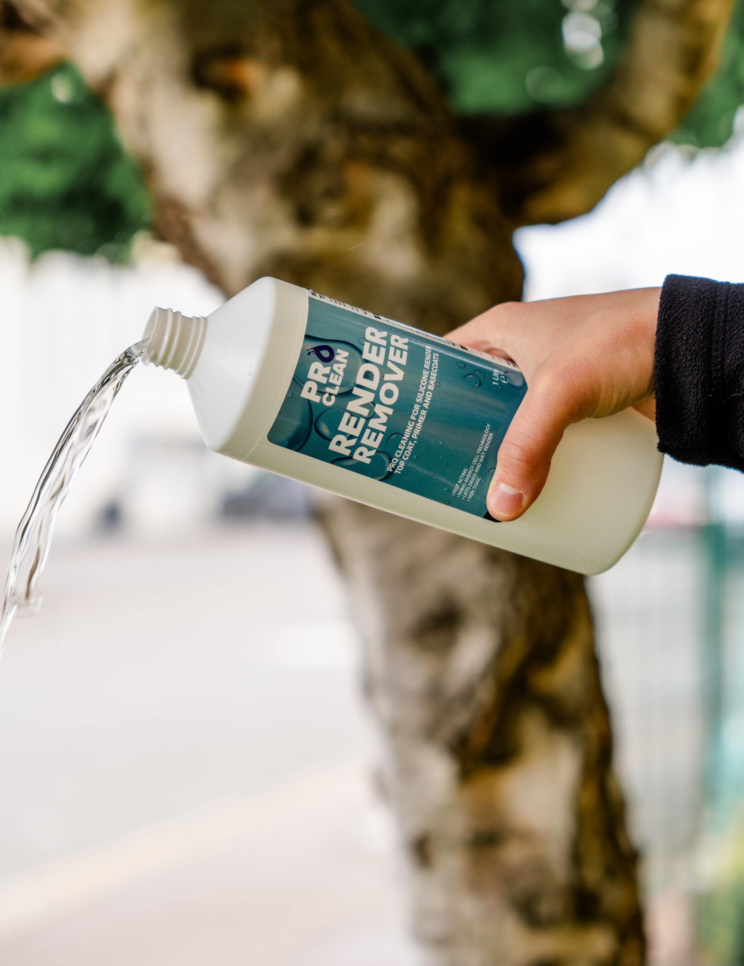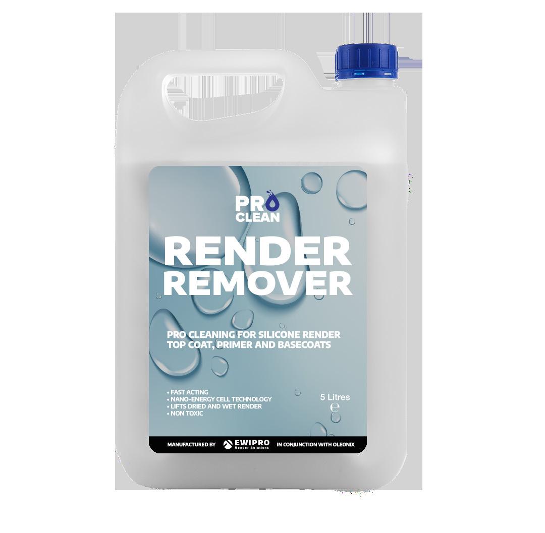 EWI Pro Clean Render Cleaner is specially formulated for the removal of unwanted silicone render, primers, and basecoats The special formula allows the product to remove wet and dry renders, as well as other cementitious products The unique formulation breaks down silicone render, removing it efficiently from windows, walls, and other unwanted areas. Pro Clean uses nano-energy cells which penetrate the render spillage and actively help lift it away, cutting the cleaning times and costs in half