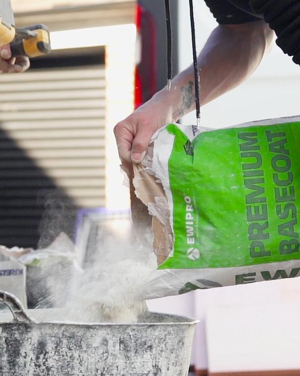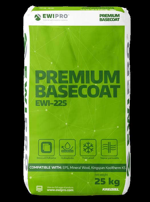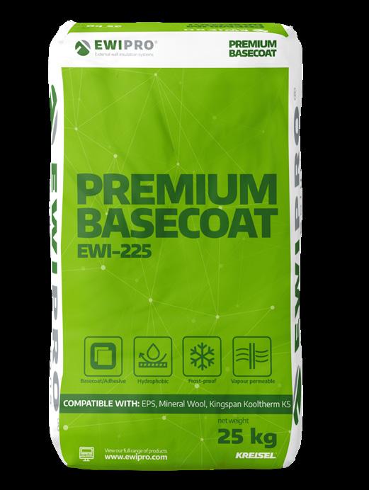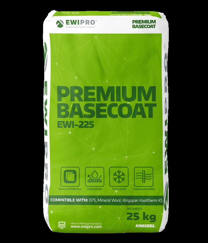 Premium Basecoat is breathable, high strength and durable. EWI-225 is EWI Pro’s finest basecoat adhesive, and can be used for a range of solutions For example, this product is ideal as a basecoat/adhesive for Mineral Wool, Kingspan K5 and Wood Fibre insulation boards, or as a render-only solution for a range of substrates, including render carrier board The adhesive contains white Portland cement – making it stronger than other basecoat adhesives Once the basecoat has dried it provides an incredibly strong and flexible reinforcement layer; we therefore highly recommend this product for ‘render only’ systems. We suggest filling a large bucket with the correct quantities of water prior to adding the dry basecoat mixture Use a paddle mix to mix the basecoat with water until you have achieved an even consistency mortar Leave the bucket for 5-10 minutes after mixing, and then mix again prior to application