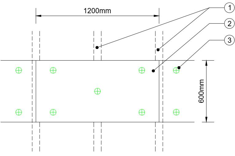 Each 1200 x 600 board is attached to the sheathing board using the domino pattern of 5 fixings per slab. Around windows additional fixings are used to reinforce these areas.