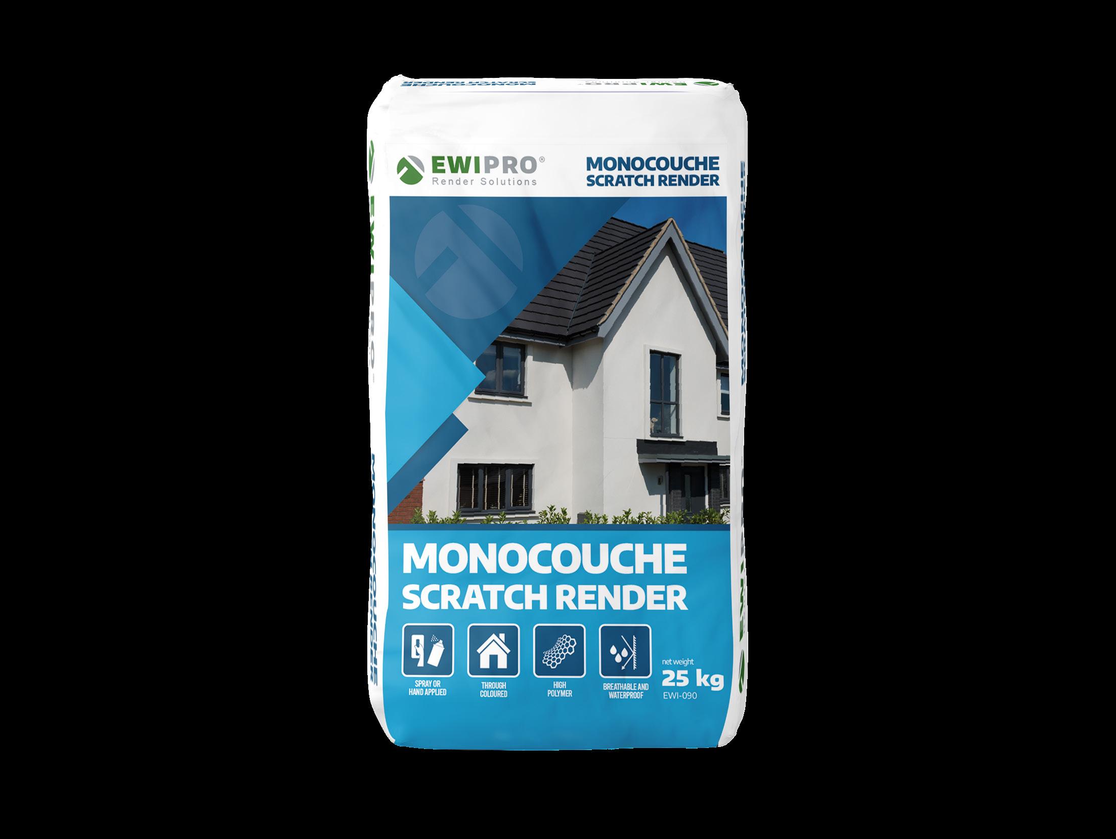 Monocouche Render is a high-performance, and extremely versatile Portland cement-based, through-coloured scratch render Being used on larger commercial or residential properties, and suitable for various substrates, the EWI-090 is the ideal solution The two pass application produces high water-repellency, breath-ability, and durability, all achieved for a long period with little maintenance. The natural stone-like finish is a highly desirable benefit of this decorative render. Our newly expanded range of 16 colours can deliver the aesthetic to match the natural stone finish. Make a statement with terracotta and cornflower, or go for a more subtle, classic look with latte or sourdough. EWI-090 Monocouche Render combines texture and colour to produce an exceptional façade