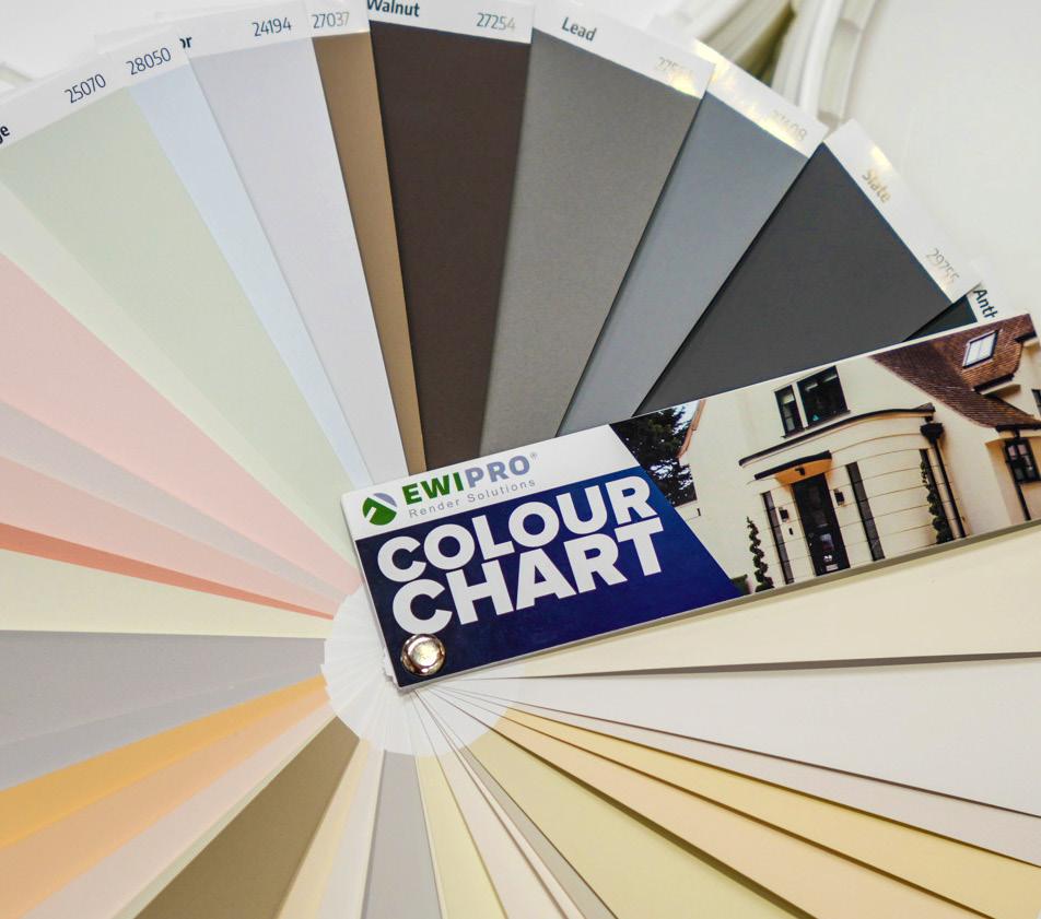 The EWI Pro Colour fan details our 50 most popular colours with physical representations of the finished coating. As such, you can be sure that the colour you pick will look exactly the same on the finished façade.