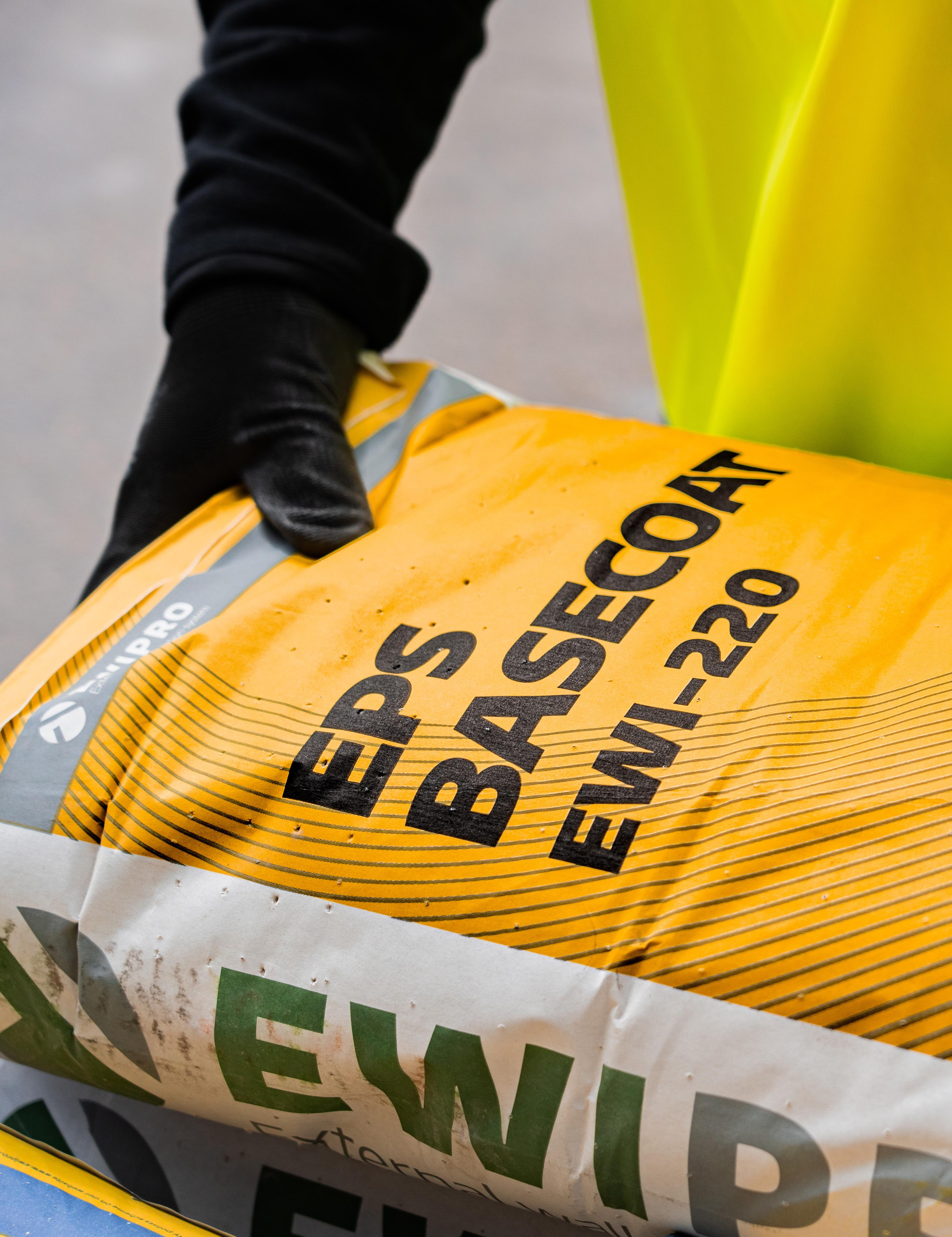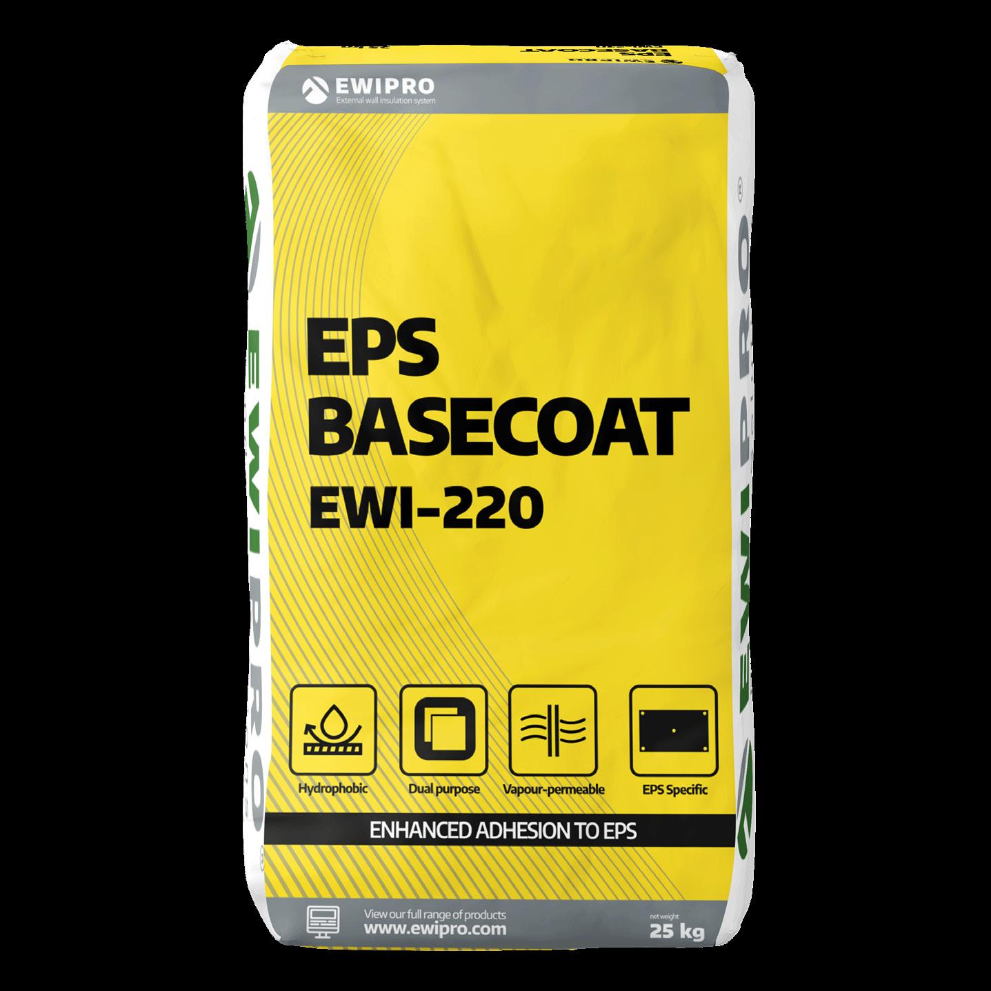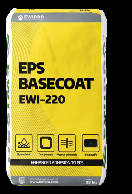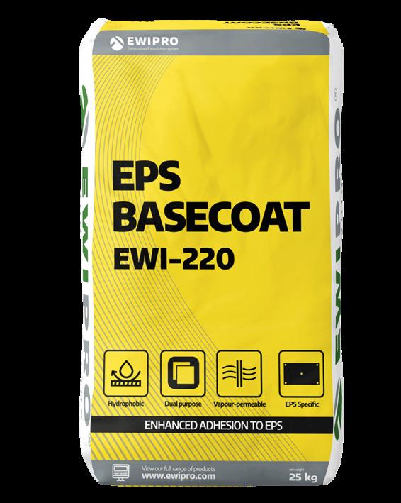 EWI Pro’s EWI-220 EPS Basecoat Adhesive is our most popular EPS compatible adhesive It is a dual-purpose product, used to fix EPS insulation to substrates and also as part of the basecoat reinforcement layer. Once dry, the adhesive provides a strong, flexible and waterproof layer. Being dual-purpose, this product allows installers to have only one type of bag on-site, meaning less wastage