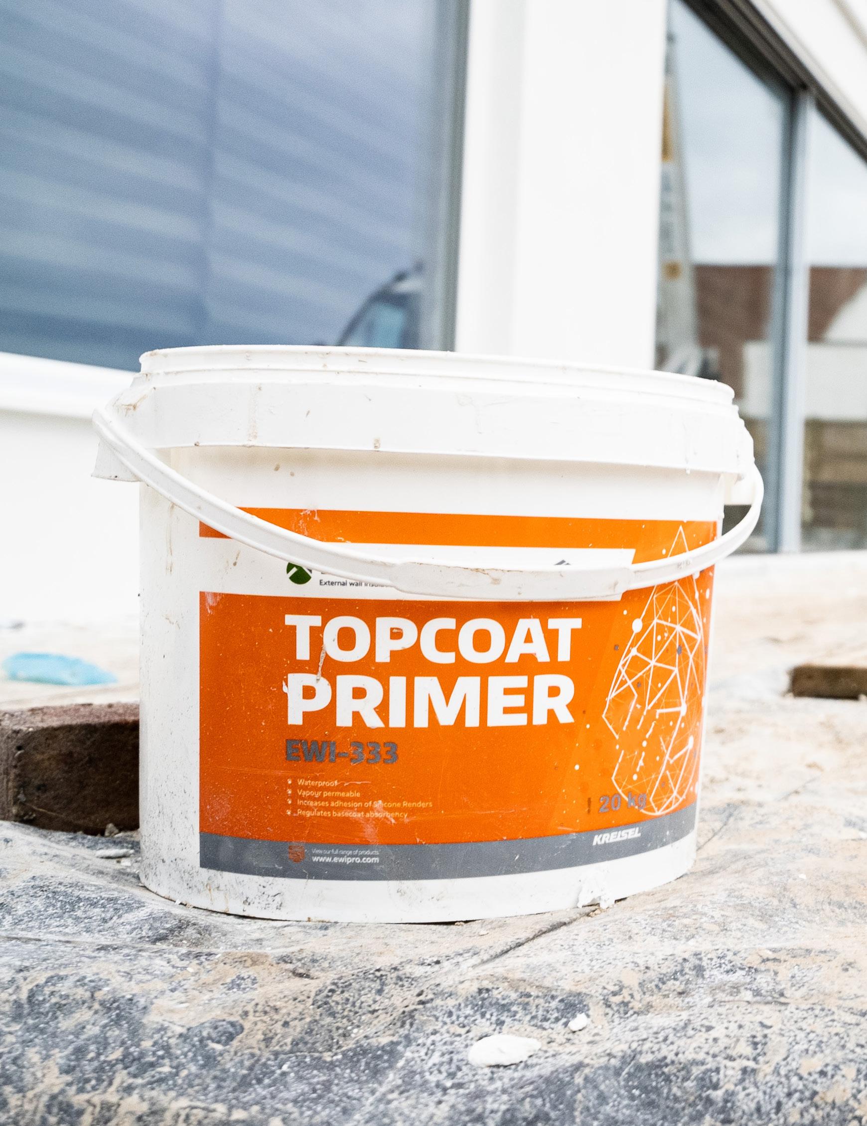 Top Coat Primer is based on potassium water glass and water dispersion of silicone resin and helps strengthen the substrate and limits its absorptive capacity without compromising its breath-ability Our Top Coat Primer should always be used during the summer months because it gives the render applicator more time to get the required finish on the render, however even during the cooler months of the year the primer aids adhesion between basecoat and the silicone render so we do recommend using it all year around