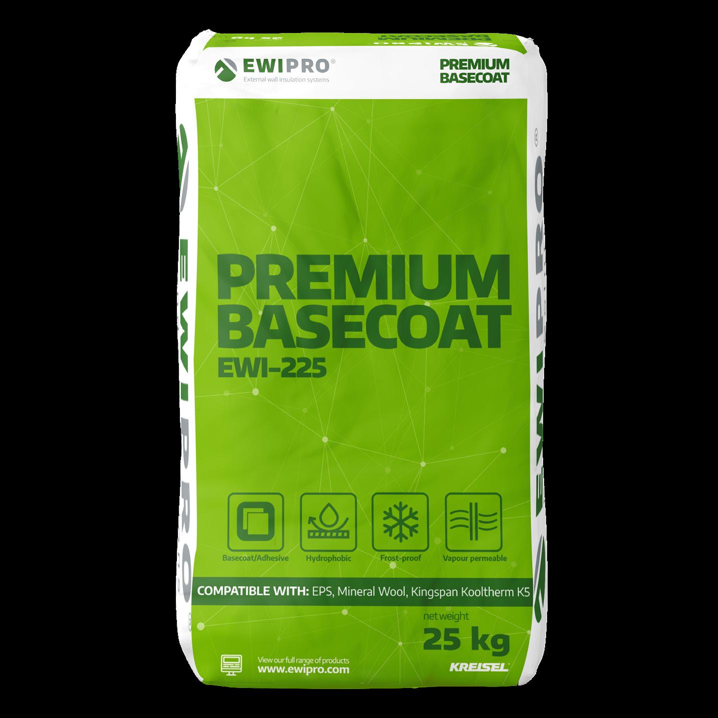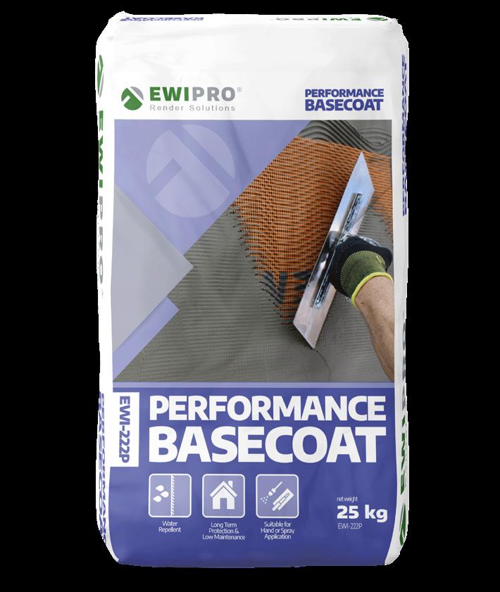 EWI-222P Performance Basecoat 25kg is a polymer-rich cementitious basecoat that can be used on many different substrates, providing a breathable and water repellent protective coat You can use EWI-222P on render-only projects as well as on different insulation materials including EPS (where it can be used as an adhesive and a basecoat). EWI-222P should always be finished with a Silicone Render to ensure a robust and long-lasting decorative finish.