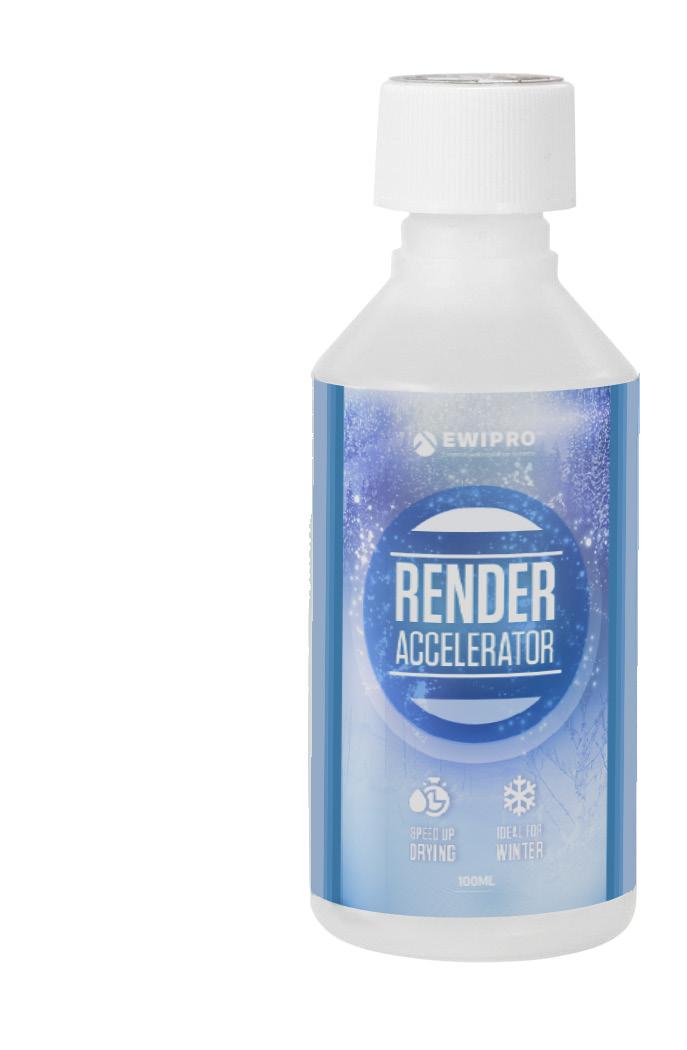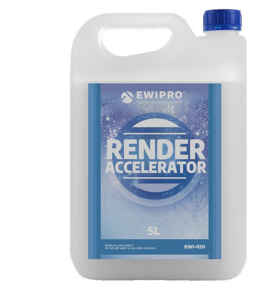 EWI-020 Render Accelerator is a high-quality liquid additive that can be used to accelerate the curing process of Silicone or Acrylic renders If you live in a colder climate, where the drying process takes a long time, this product is a worthwhile investment It allows installers to continue to install thin-coat render systems throughout the winter months EWI-020 works to speed up this curing process, allowing for faster job completion rate