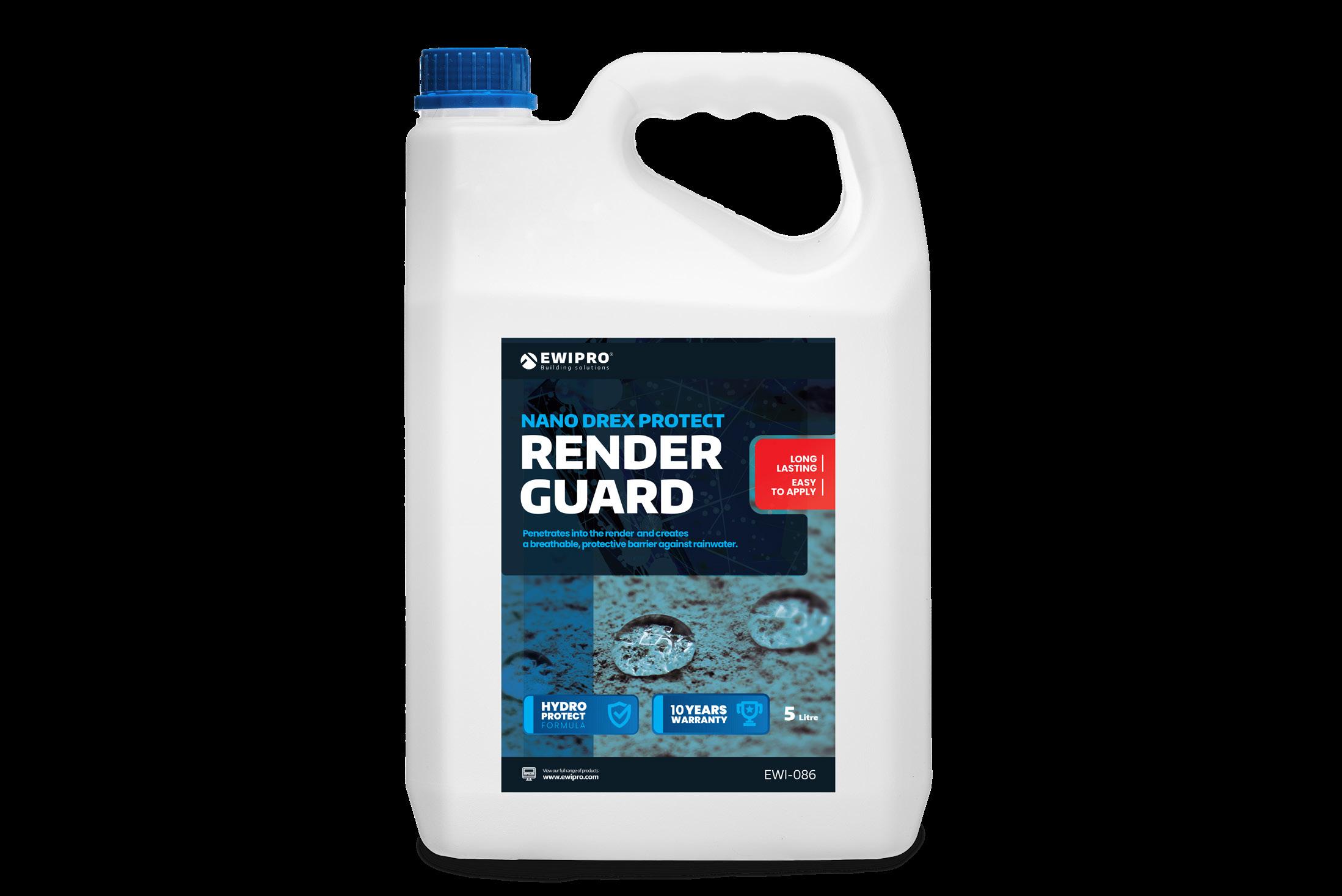 Nano Drex Protect Render Guard provides an additional barrier over the render to protect it from the elements Nano Drex Protect Render Guard works to penetrate the render to create a breathable, vapour-permeable layer against rainwater damage, dirt penetration and biological growth The product is extremely easy to apply and dries transparently with no glossy effect