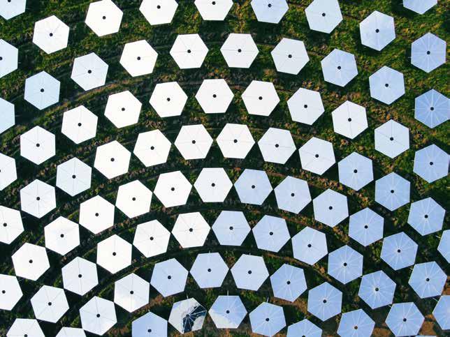 Eine innovative Produktionsstätte klimafreundlicher flüssiger Brennund Kraftstoffe in Deutschland wirkt wie ein Andachtsort für Sonnenanbeter.