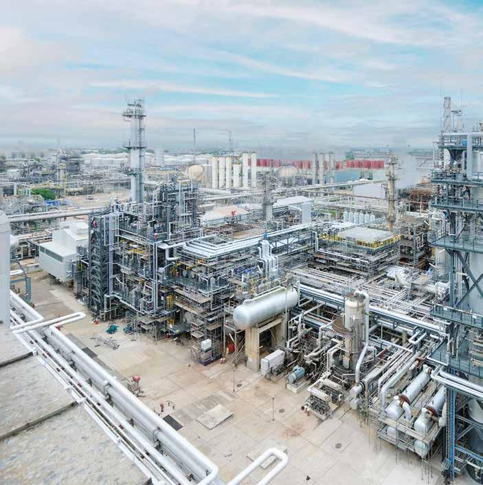 Klimaschutz mit Wasserstoff Auf grünen Wasserstoff zur Herstellung nachhaltiger flüssiger Brenn- und Kraftstoffe setzt man in der Raffinerie Heide in Schleswig-Holstein. Im Rahmen des Projekts „Green Hydrogen Hub“ wird dieser Wasserstoff in den Raffinerieprozess eingespeist.
