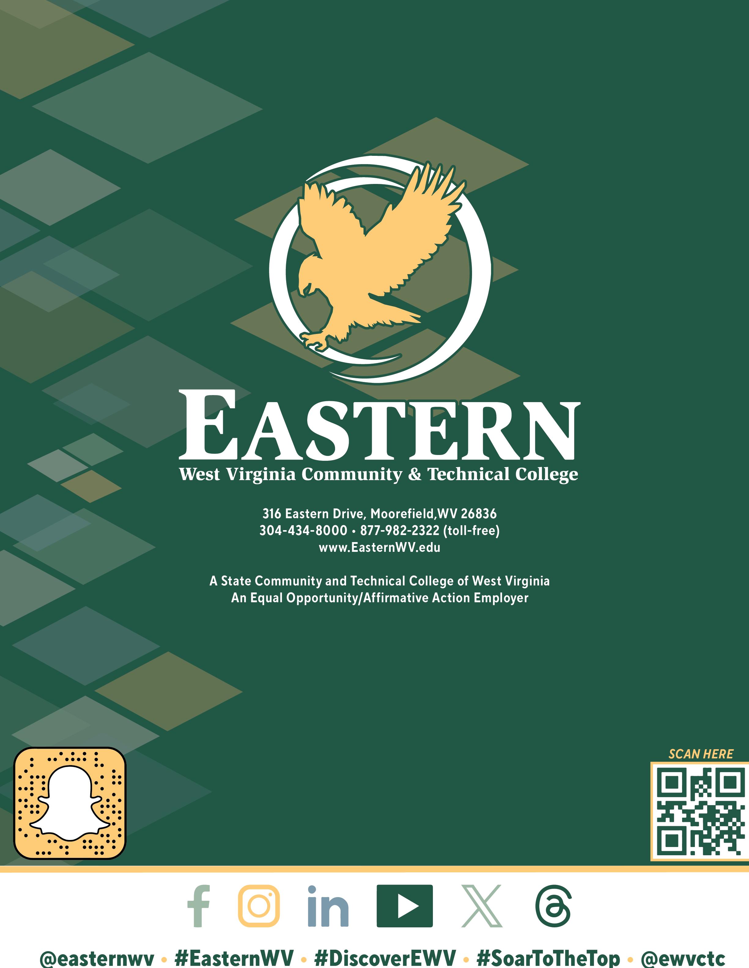 Eastern West Virginia Community and Technical College (Eastern) provides accessible and affordable educational opportunities for academic, technical, workforce training, and life-long learning for the Potomac Highlands regional community.