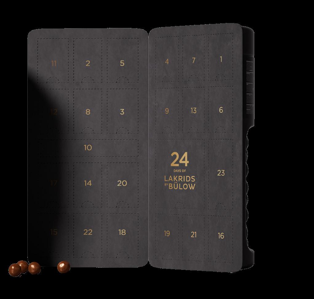 Dekorativa julstrumpor i tre olika designer som levereras blandade med varandra. De är fyllda med lena chokladtryfflar med smak av salt karamell och samt en påse favoritmix, en blandning av det mest uppskattade varumärkesgodiset.