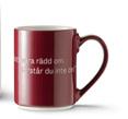 Tryckt standardmotiv (rött) med er logotyp i 4-färgstryck (CMYK) som en etikett på framsidan ingår.