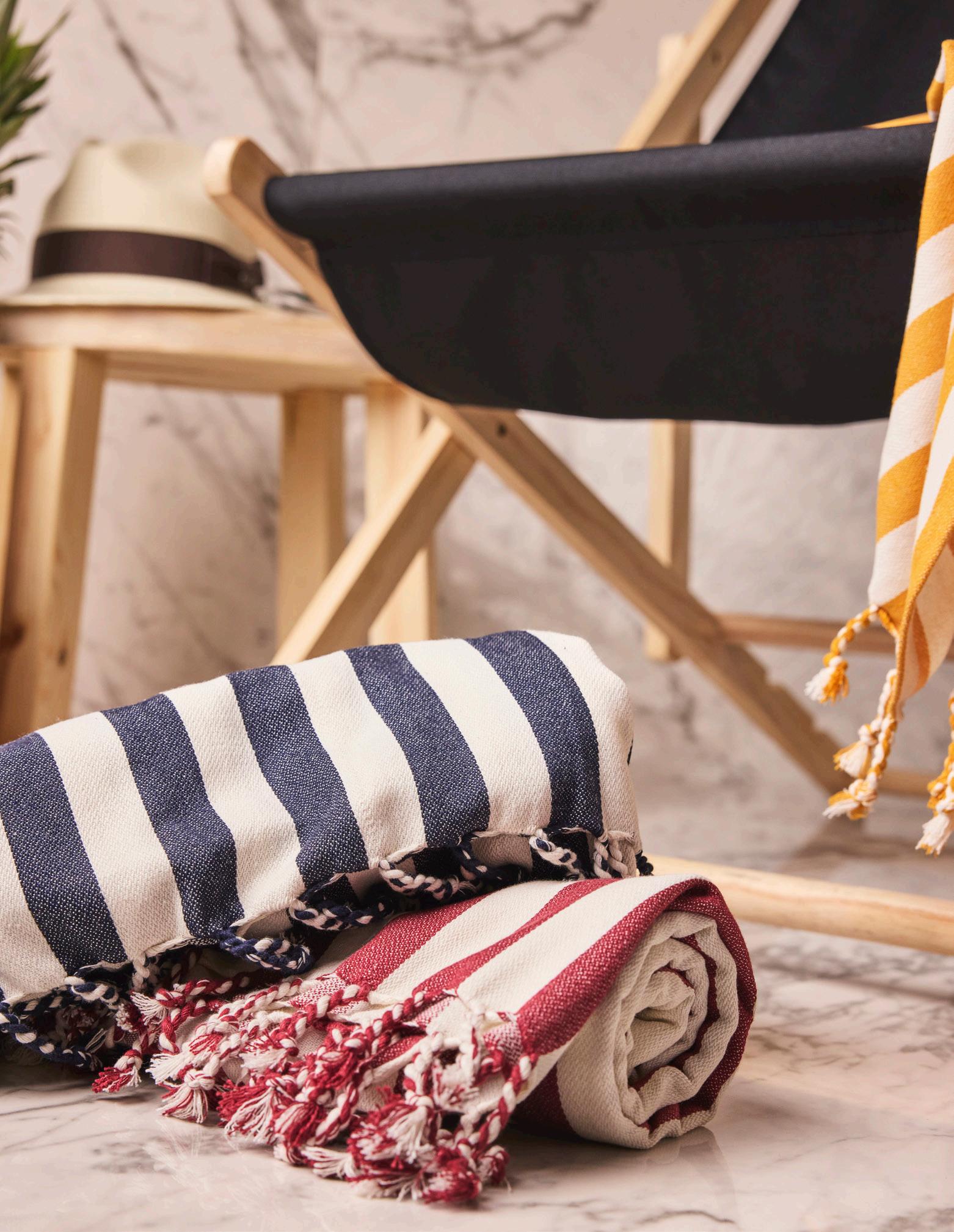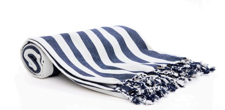 Härligt randig hamamhandduk i 70 % återvunnet material. En lättorkad handduk som passar utmärkt för stranden, badrummet eller bastun. Material 70 % recycled cotton och 30 % polyester – GRS certifierad.