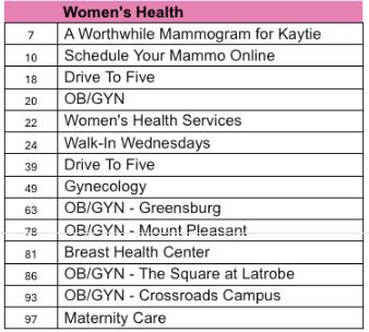 14 of the top 100 pages are directly related to the Women’s Health campaigns in October, with Kaytie’s Story taking the #7 spot!