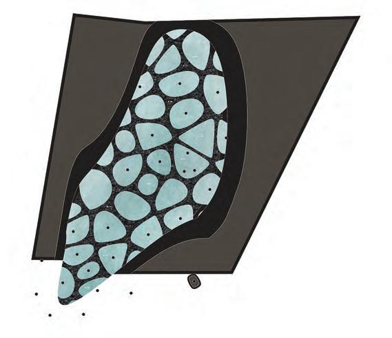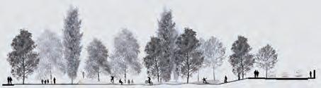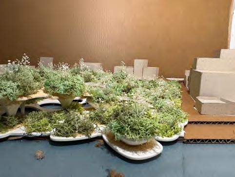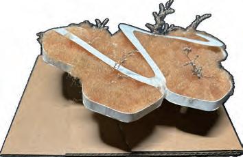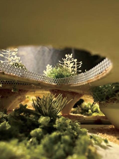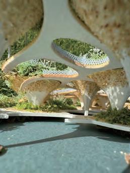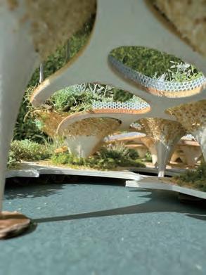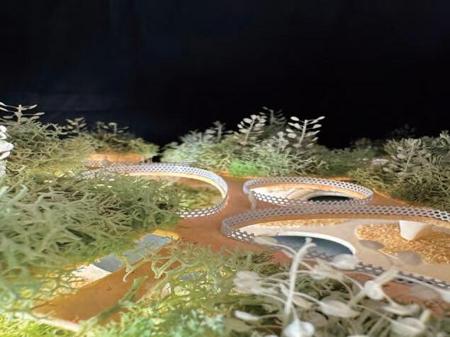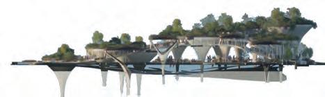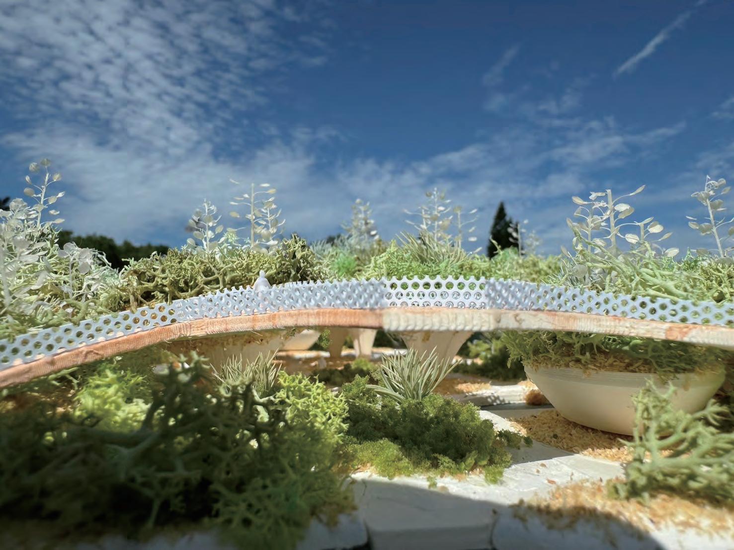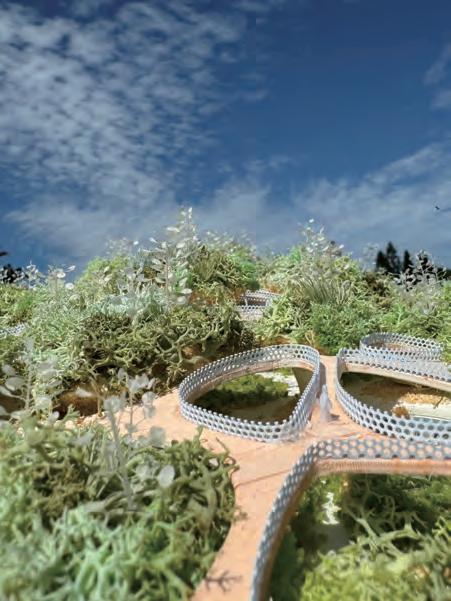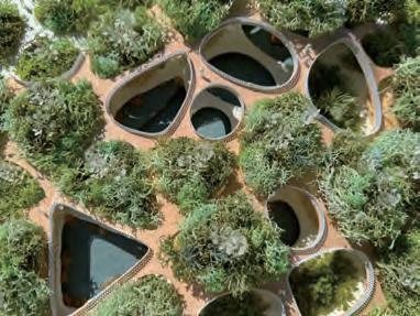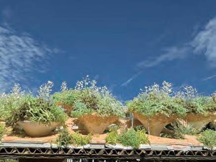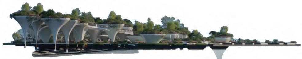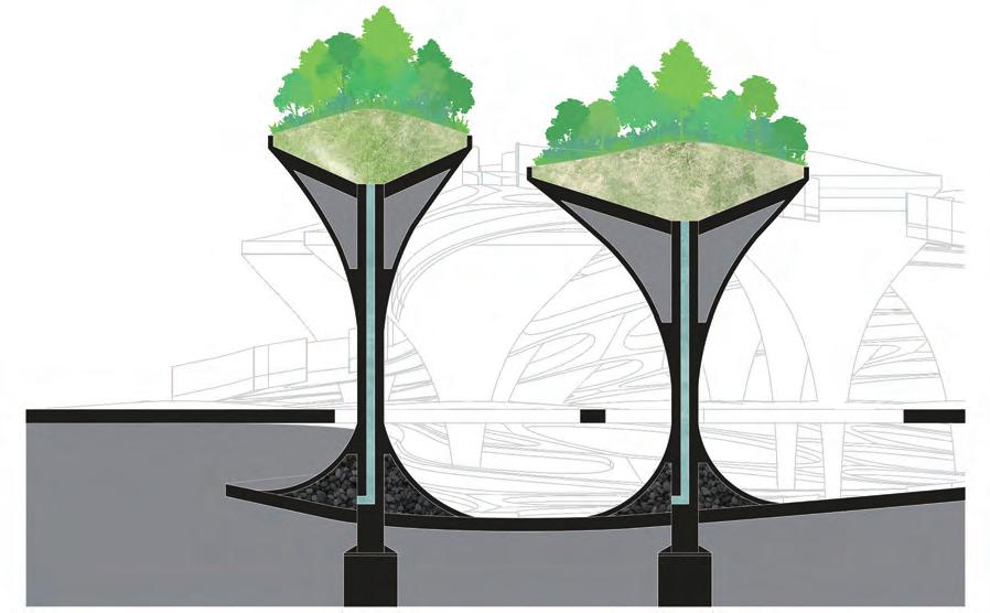 The upper part of the structure serves as a soil-covered planting space, forming a green roof layer while supporting the thin-shell system of the road.