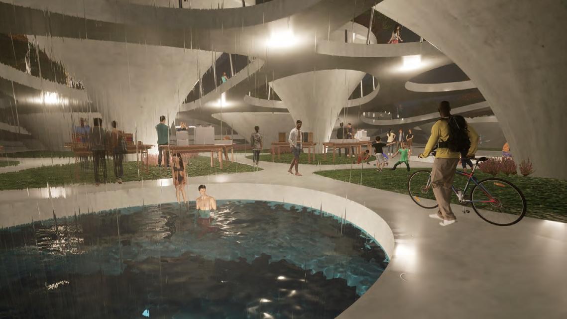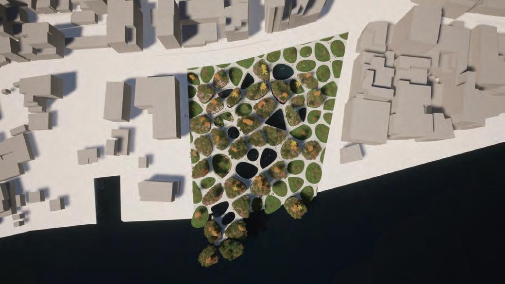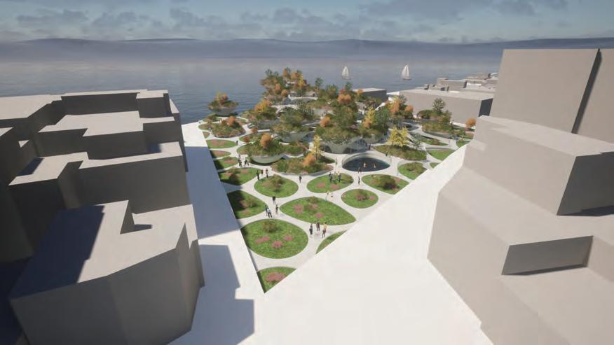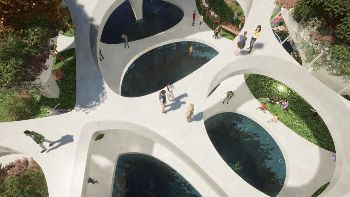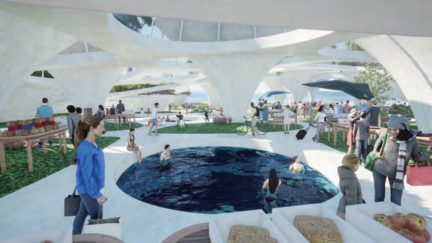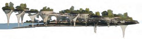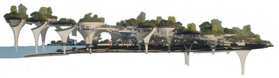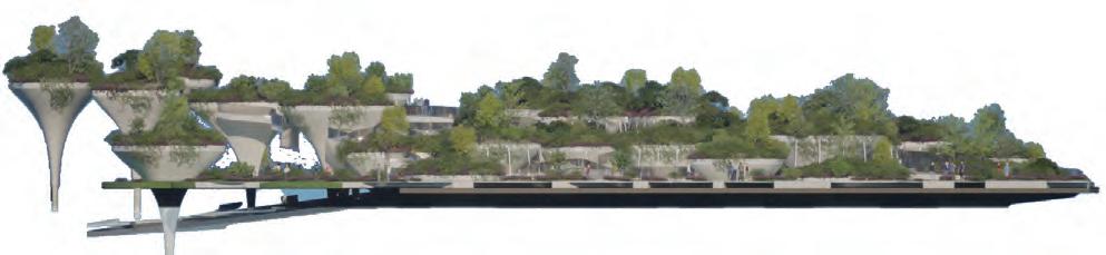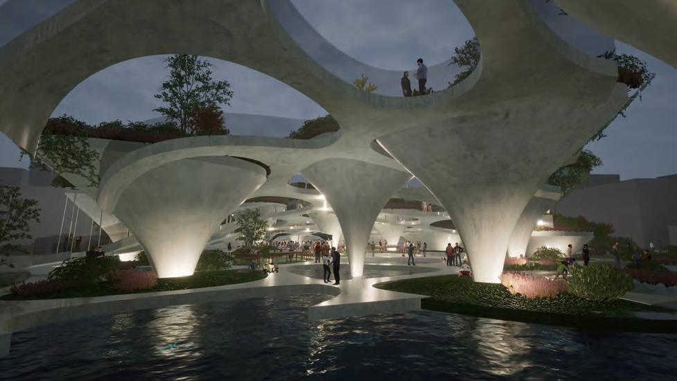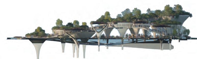 The lowest layer is the tidal plaza, which can be used as a swimming and fishing pool during high tide and as an intertidal zone for family leisure activities during low tide.