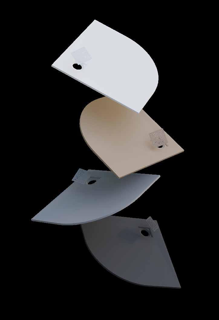 w każdej łazience. Zamawiając brodzik Arda należy wy brać jeden z sześciu kolorów wyposażonej w unikalny, organiczny wzór pokrywy syfonu, co jeszcze bardziej podkreśla oryginalny i indywidualny charakter tych produktów. Koncept Arda doskonale wpisze się w cha rakter i styl modnej łazienki.