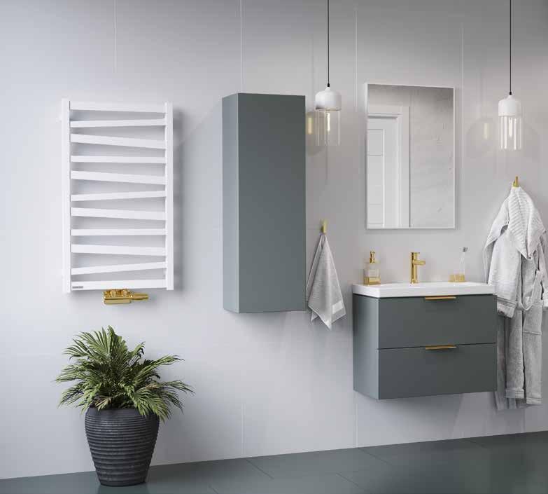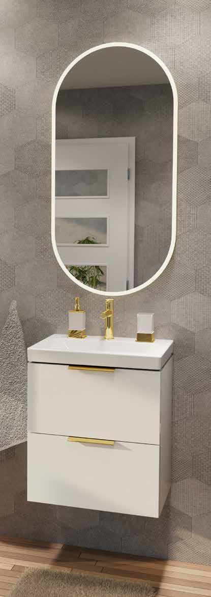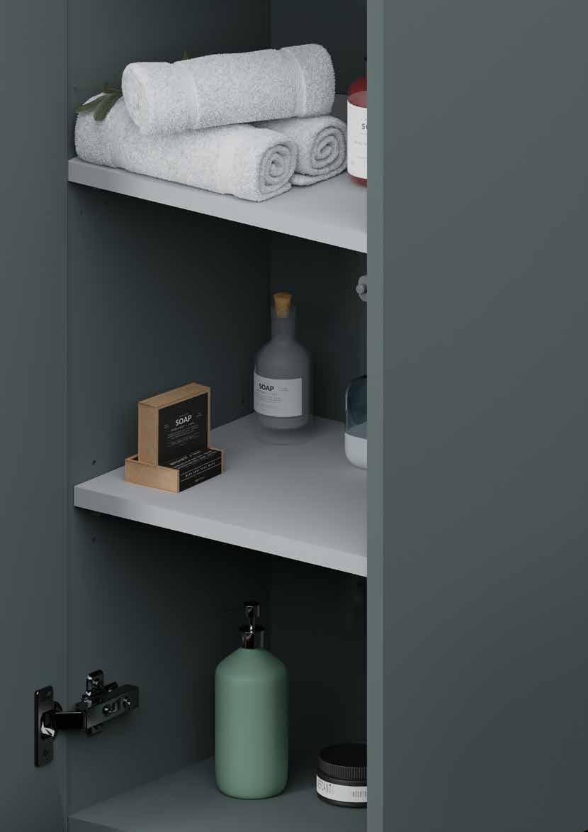Fronty szafek są lakierowane w najwyższej jakości technologii i zapewniają zabezpieczenie mebla w wy magającym pomieszczeniu jakim jest łazienka. Pro ponowane kolory są obecnie bardzo często wykorzy stywane w projektowaniu łazienek, ponieważ dobrze łączą się z innymi kolorami w pomieszczeniu.