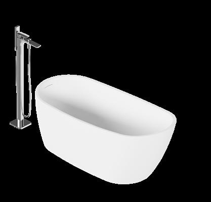 Wanna akrylowa wolnostojąca z przelewem i zestawem odpływowym, biały połysk