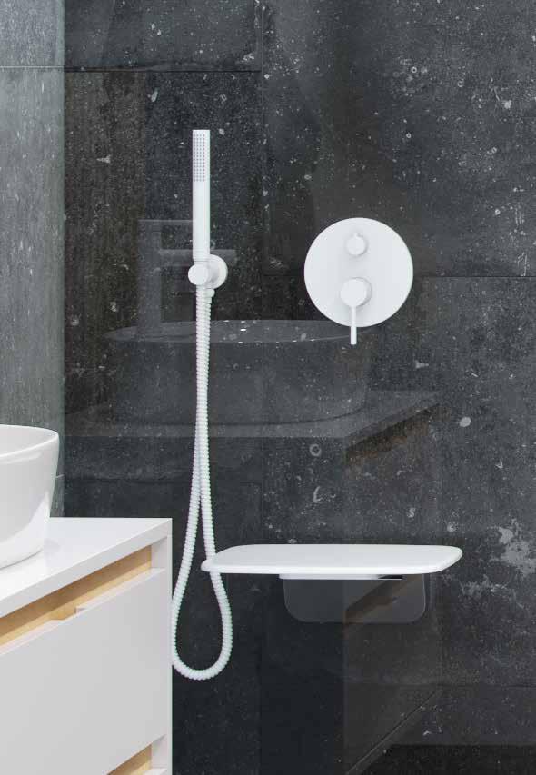 Biała armatura wprowadza do łazienki subtelność i delikatność, której próżno szukać w innych wykończeniach.