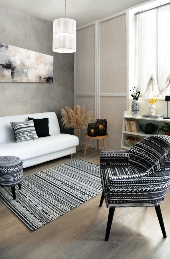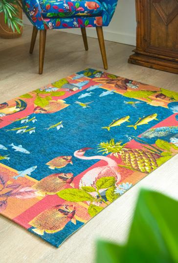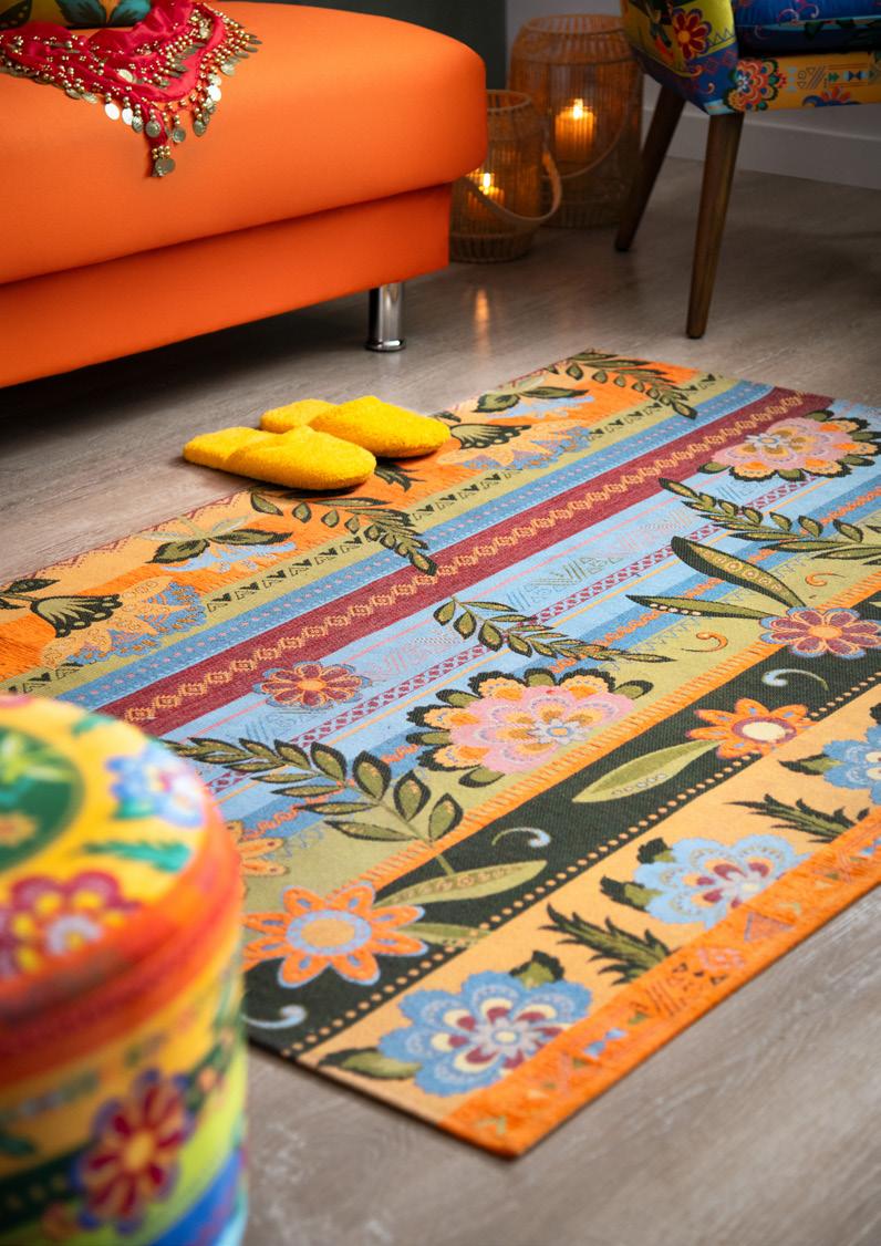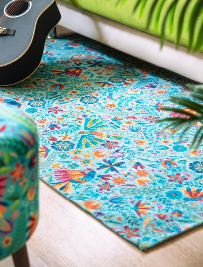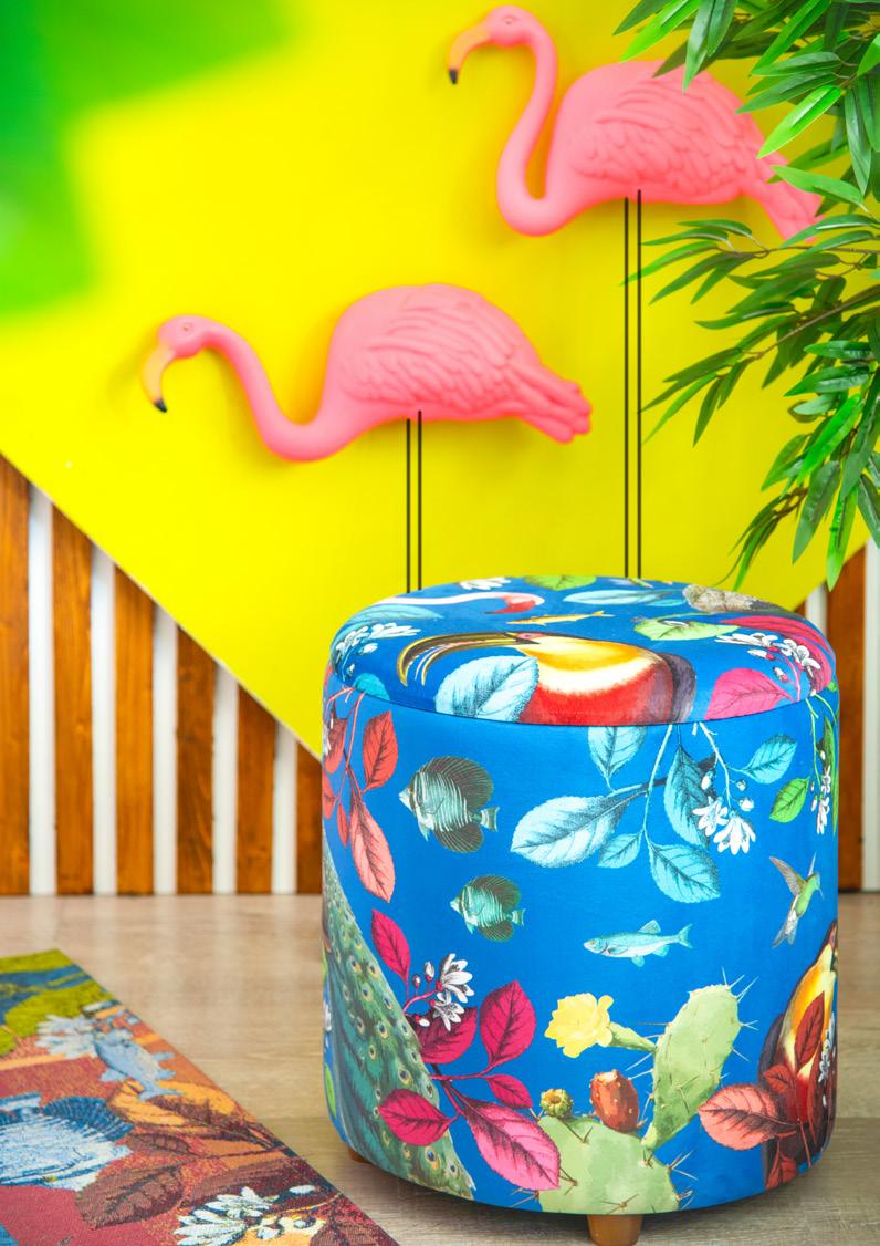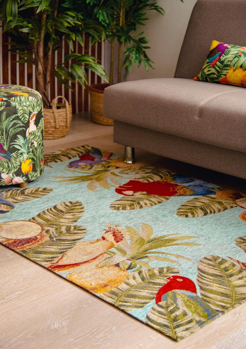 Un’esplosione di creatività e design moderno dove contrasti audaci tra colori primari e linee pulite creano un ambiente dinamico e stimolante. In questo soggiorno vibrante, i motivi naturali e animali nfondono vita e dinamismo all’intero spazio. Il tappeto, ricco di dettagli elaborati, diventa una tela vivente dove uccelli colorati, fiori rigogliosi e foglie tropicali si intrecciano e richiamano la bellezza incontaminata della giungla. La poltrona ed il pouf, con le loro fantasie armoniose, sembrano trasportare chi si siede in un viaggio sensoriale attraverso mondi lontani e affascinanti. Questo soggiorno è un rifugio creativo che stimola l’immaginazione e il desiderio di scoperta. Ogni seduta, ogni passo su questo tappeto porta più vicino alla natura, trasformando lo spazio in un’oasi di tranquillità e bellezza.
