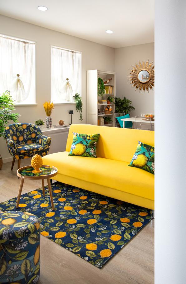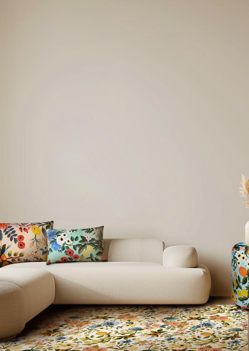 Un soggiorno accogliente dove la luce naturale danza attraverso tende leggere, illuminando ogni angolo come una morbida carezza. I motivi floreali su tappeti e poltrone richiamano un giardino segreto, portando all’interno la bellezza e la freschezza della natura. Morbidi cuscini adornano le delicate pareti bianche che incorniciano un’atmosferà luminosa e rilassante. Le piante in vaso, posizionate con cura, amplificano questa sensazione di tranquillità e vitalità, creando un rifugio sereno in cui ogni dettaglio parla di armonia e connessione con il mondo naturale. Un luogo delicato ed essenziale dove il tempo sembra rallentare, invitando a un momento di pace e riflessione.