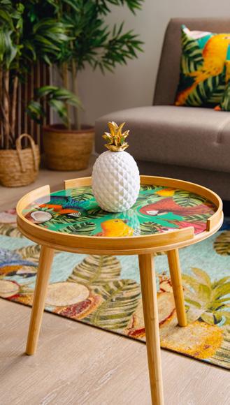 Tavolini pratici e fantasiosi perfetti per aggiungere un tocco di originalità alla casa. Ideali per un utilizzo quotidiano grazie alla robustezza del bambù ed al vetro temperato. Ogni decoro è stato sviluppato internamente dai nostri designer e nasce dopo un attento studio di tendenze, colori e materiali per ottenere un risultato esclusivo.