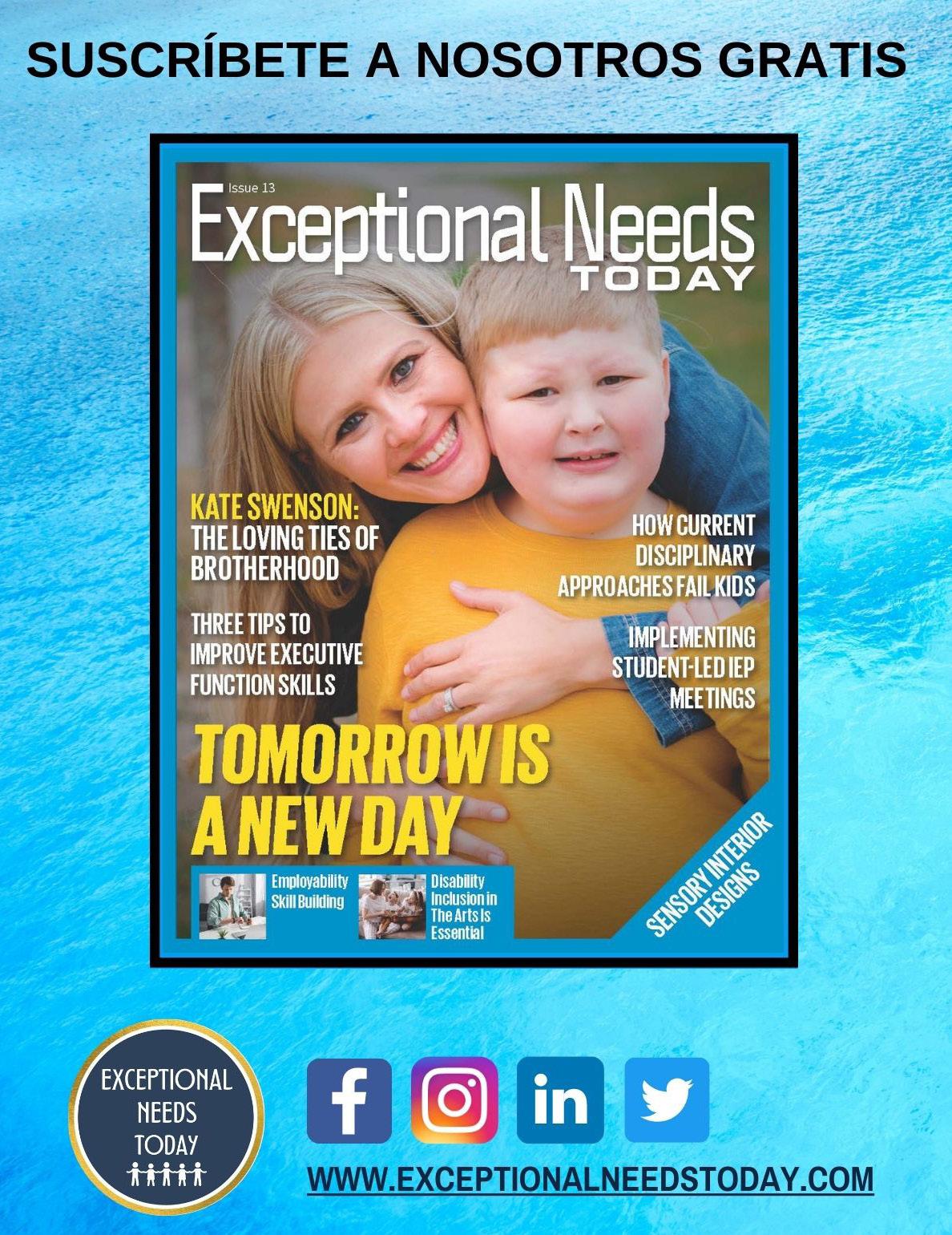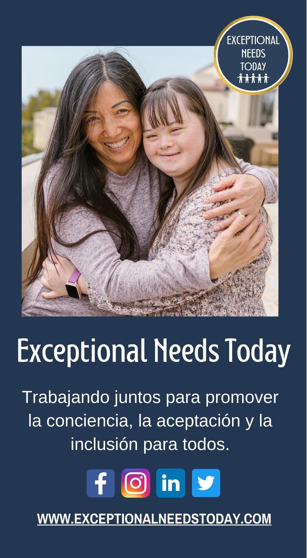 Esta edición especial de Exceptional Needs Today provee 15 artículos en español escritos por extraordinarios profesionales involucrados en la comunidad hispana. Dra. Joscelyn Ramos-Campell, una ganadora del premio nacional al mejor portavoz y consultora de discapacidades bilingües se encuentra en la portado junto con su hijo de ocho años, Joshua, quien fue diagnosticado con TEA. Estamos muy emocionados por publicar su artículo exclusivo, Guía de intervención temprana y cómo encontrar servicios en los 50 estados de Los Estados Unidos. Es un regalo tener su dirección justo al alcance de sus manos.