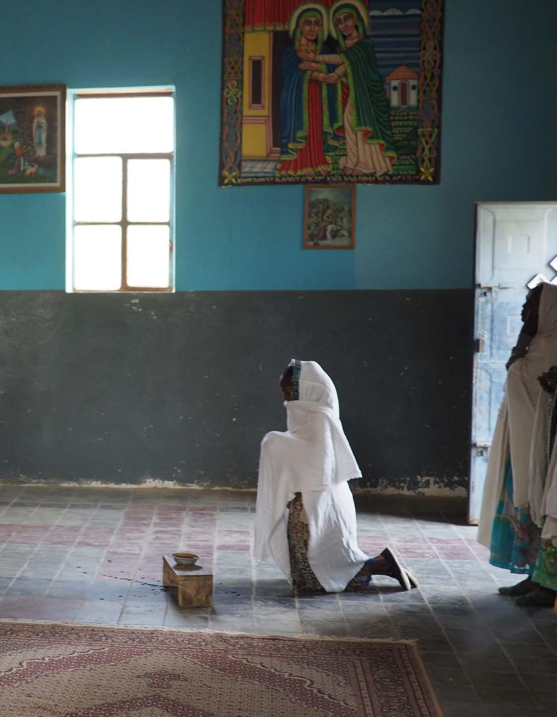 During filming for a documentary on the Ethiopian/ Eritrean border (before the civil war), we visited a wedding party in a remote village. We drove to the end of the road and walked through two valleys to get to the house. On top of the hill, the entire village was assembled under a tent for a wedding of two young people. We spent the entire day there, in what felt like a ritual from another time. The whole day the revellers (and the groom) partied, ate and drank, waiting for the bride to finish dressing and appear from her hut. Old men and women swathed in white robes solved the world’s problems while