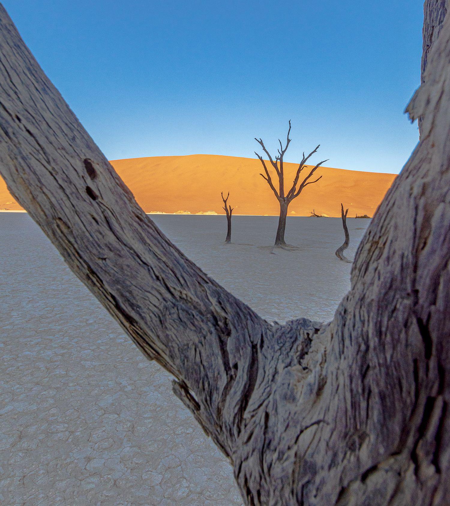 Deadvlei with the 700-year-old petrified Camel Thorn trees was another highlight. Located about 2-3kms from the Sossusvlei car park, these trees are dead but have never decomposed because there is no water. The visually stark trees are a reminder of the severity of the climate in this region. This image was captured with a Nikon D7200 @F11, 1/500s, 10mm (Equiv 15mm) and ISO400.