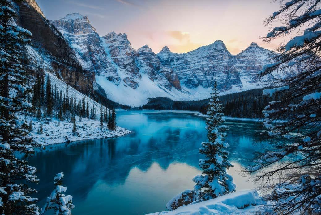 This image of Moraine Lake took a bit of planning. Every winter the road to the lake becomes buried in snow and is closed for the winter. If you can get a cold snap early in the winter before the road closes, the lake freezes over and isn’t yet covered with snow.