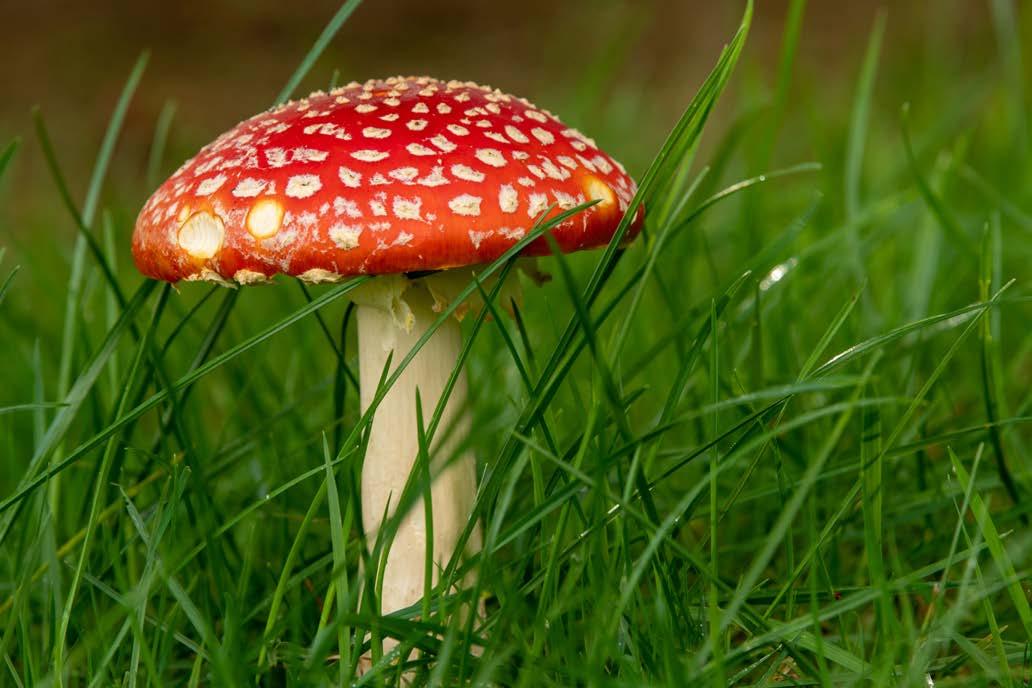 Red shouts out danger. A warning that these particular fungi are poisonous. Also an example of the complimentary colours red and green.