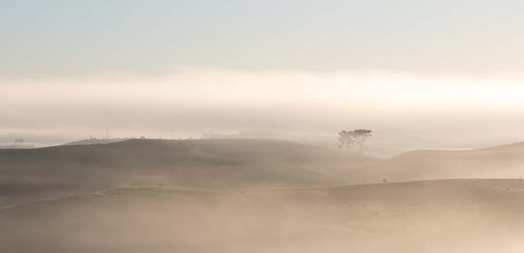 Waikato is well known for its fog. In my area it sometimes hangs around all day. On this particular morning I drove high enough to get above it. Only a tree gives you a focal point. The mist softens the greens of the landscape and the black cows in the foreground to a more neutral colour.