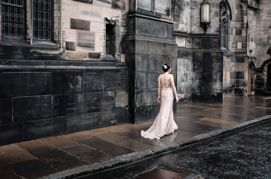 This was an unplanned street photograph taken on a walk along an Edinburgh street. The heritage buildings with their neutral colours and the early morning light provided the perfect backdrop and mood for the model and shot.