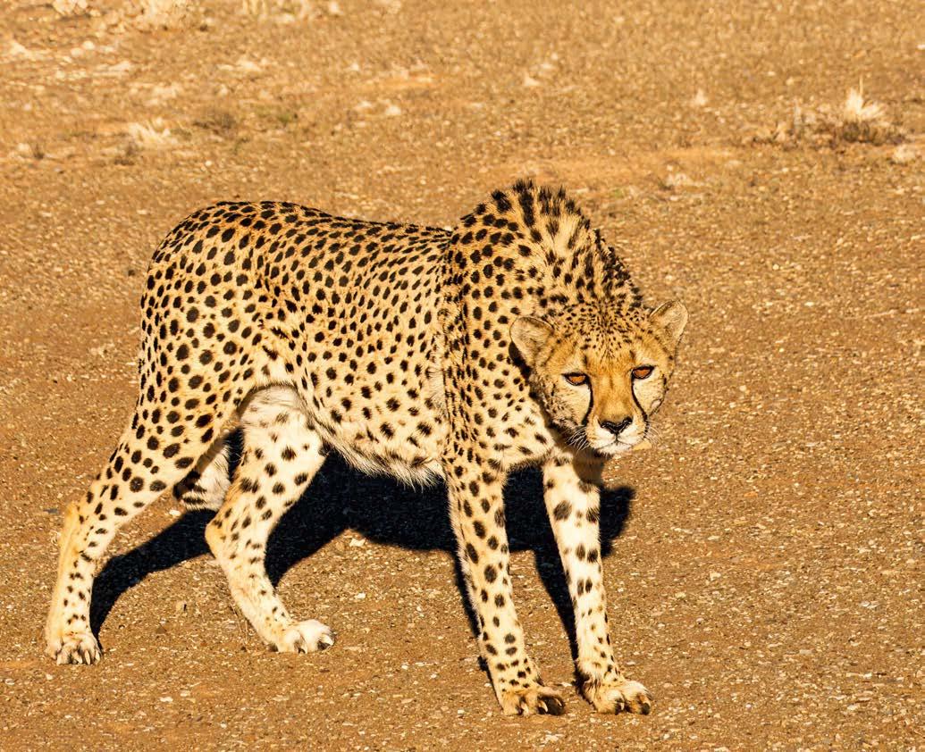 The two male Cheetahs seen here were orphaned at birth and were raised on a property at Keetmanshoop (500Km south of Windhoek). The Cheetahs were hand-fed daily by their owner. We did not realise we were going into a paddock with them (unrestrained). Their owner told us “do not run, they will take you down”. They ran at us at full pace and then stopped and stared to see who had the meat bucket. On of the cheetahs nuzzled the lens hood of one of our group. When they had consumed their lump of meat they would return for the next piece. What intrigued me was that once feeding finished they licked themselves clean then purred loudly like household cats. This image was captured with a Nikon D7200 @F8, 1/640s, 75mm (Equiv 112mm) and ISO400.