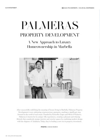 After successfully redefining the meaning of luxury living in Marbella, Palmeras Property Development is now embracing cryptocurrency payments, marking a significant step forward in the world of real estate. Founded by Kristoffer Enger and Olivia O Wickerts, Palmeras is known for its unique villa experiences, creating a pleasant and relaxing lifestyle that seamlessly merges interior and exterior spaces by combining modern design with the elegance of Andalucia. Today, they’re leading a new era in property investment. PHOTO: COCO RUBIO