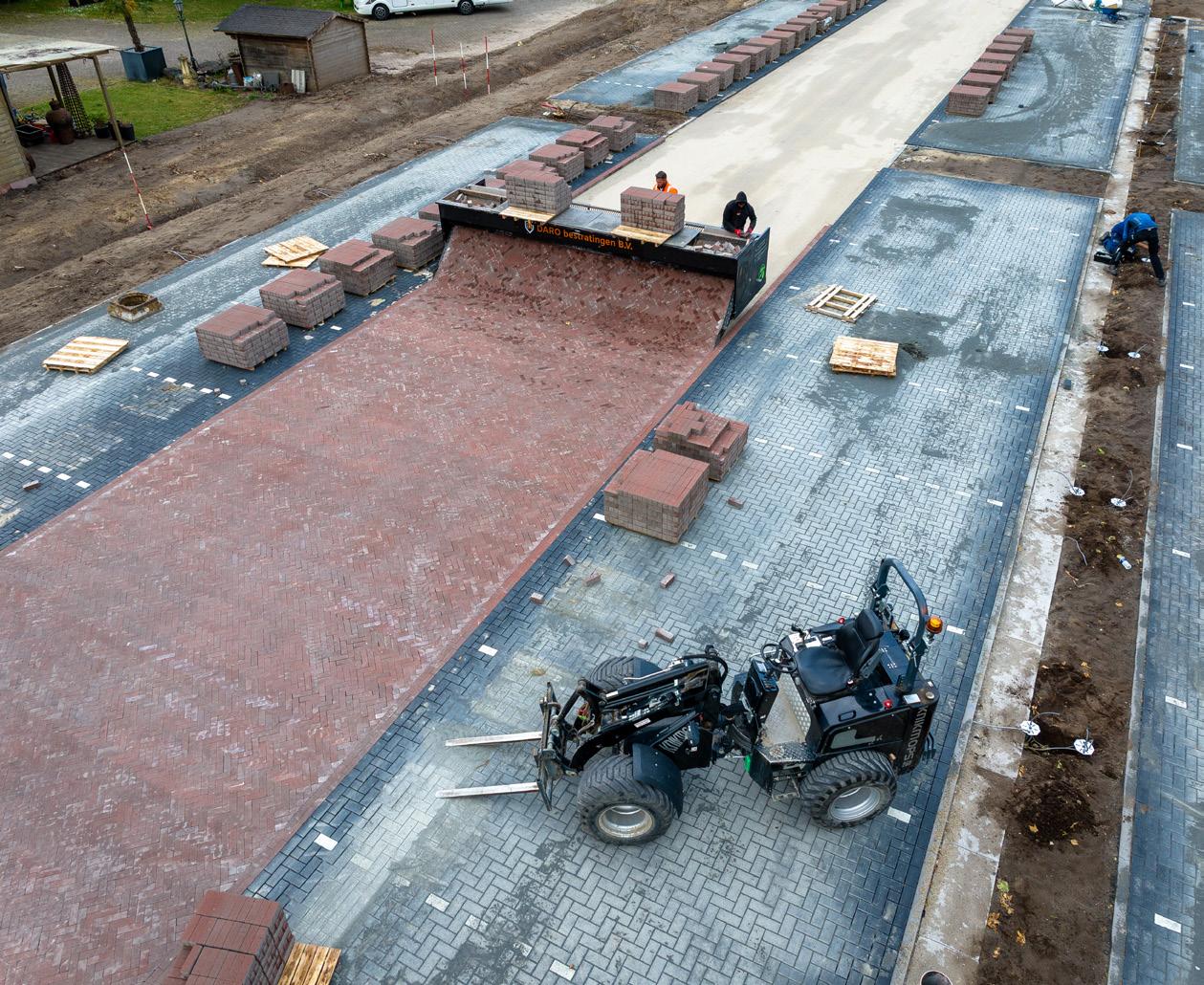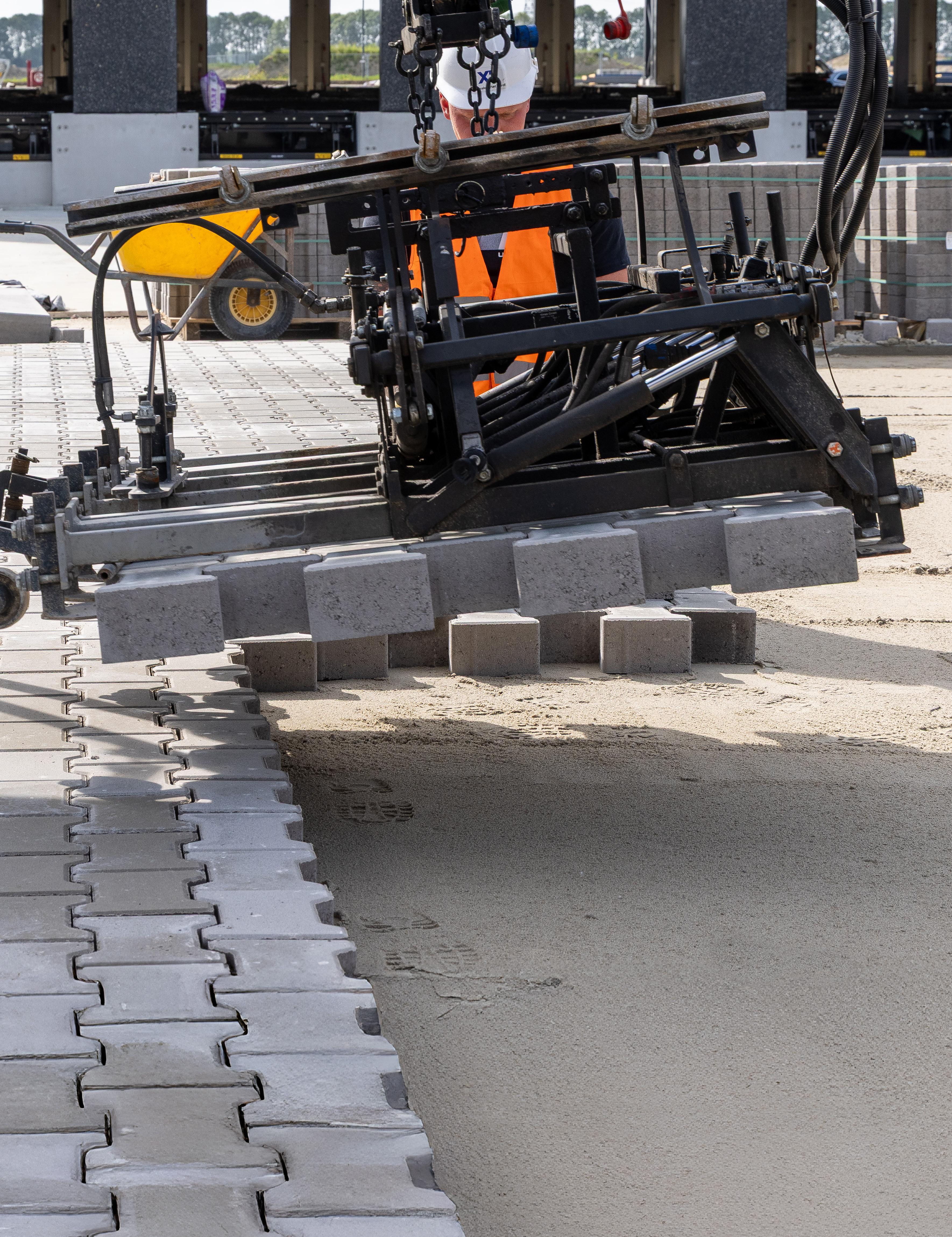 Onze betonstraatstenen worden op de nieuwste machines met de laatste technieken gemaakt. Door gebruik te maken van een omvormmachine zijn de steenpakketten nóg vlakker en stabieler.