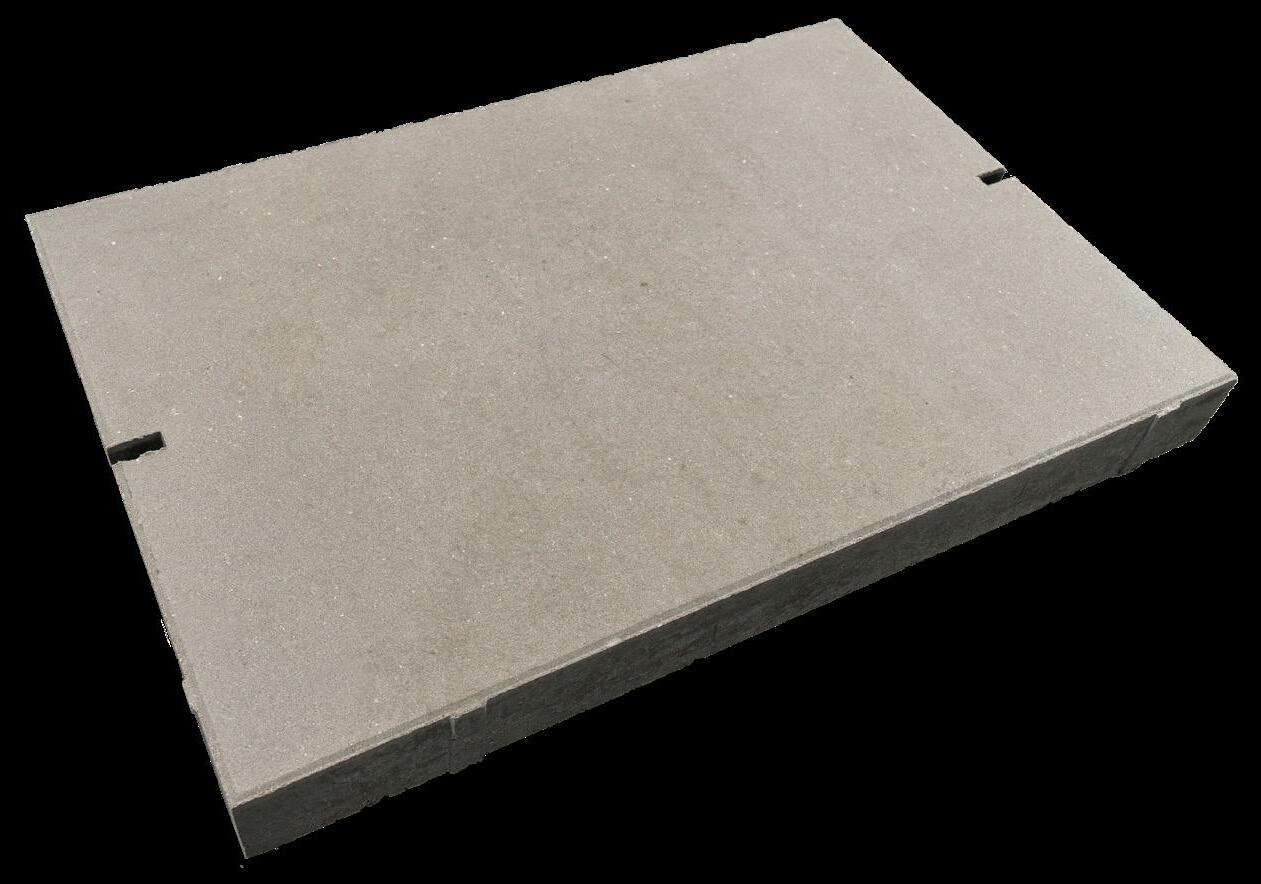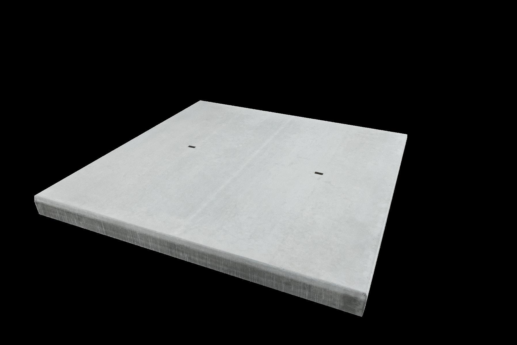 Deze betonplaat 80 x 120 cm is verkrijgbaar in 12 cm dikte met een maximale aslast van 12 ton, zonder stalen hoekrand.