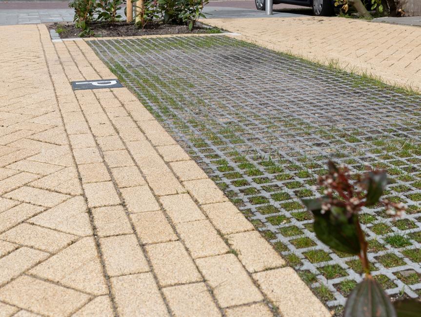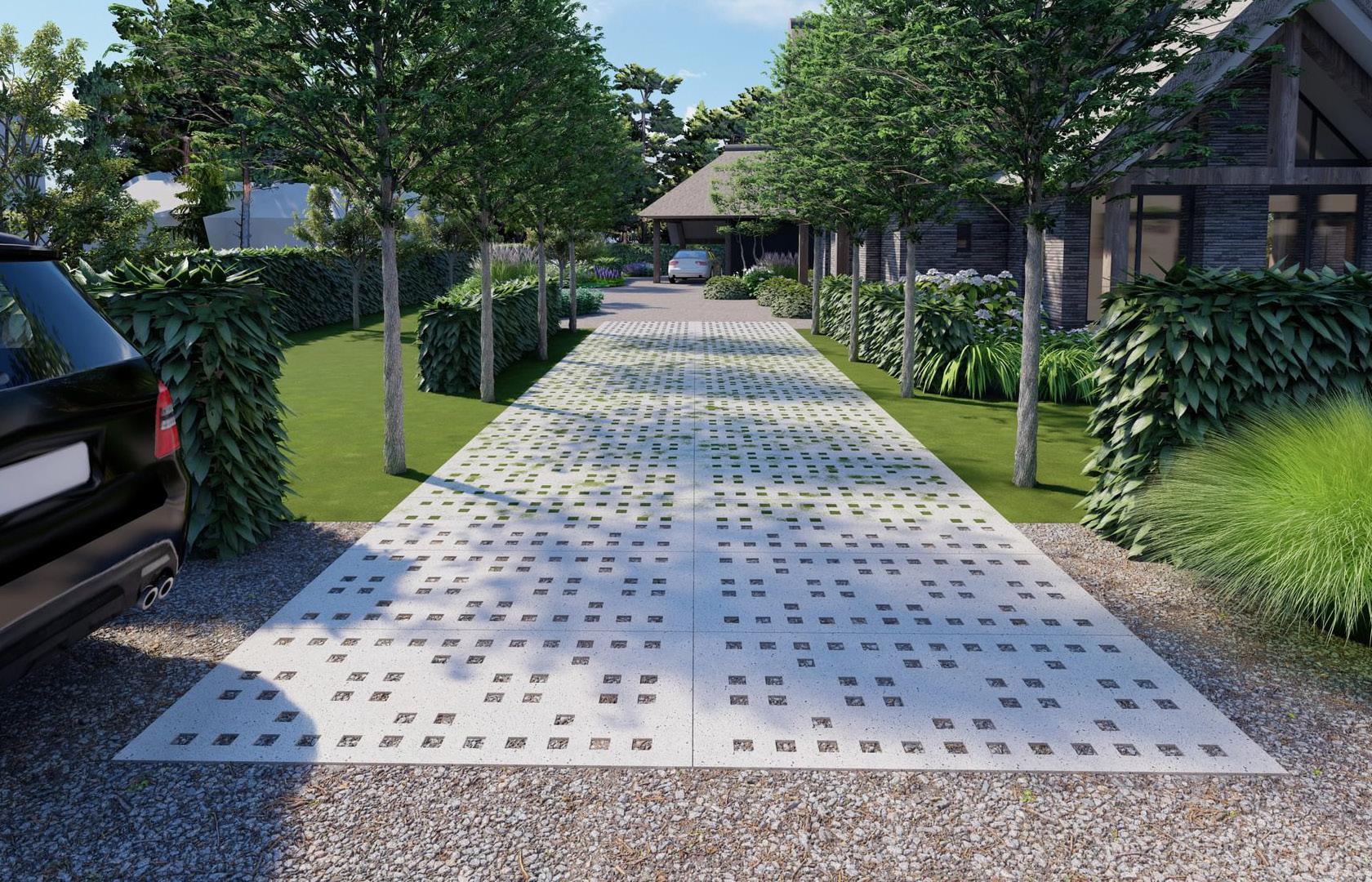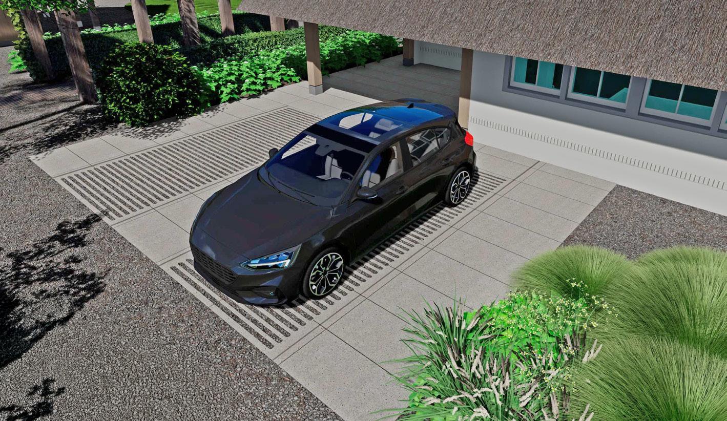 Dankzij de geïntegreerde wapening bieden de Matrix platen blijvende stabiliteit en zijn ze bestand tegen hoge belastingen. Tegelijkertijd zorgen de openingen in de plaat voor optimale drainage en infiltratie van regenwater. De open structuur kan worden ingevuld met gras, grind of split, wat bijdraagt aan waterberging, klimaatadaptatie en een natuurlijke uitstraling.