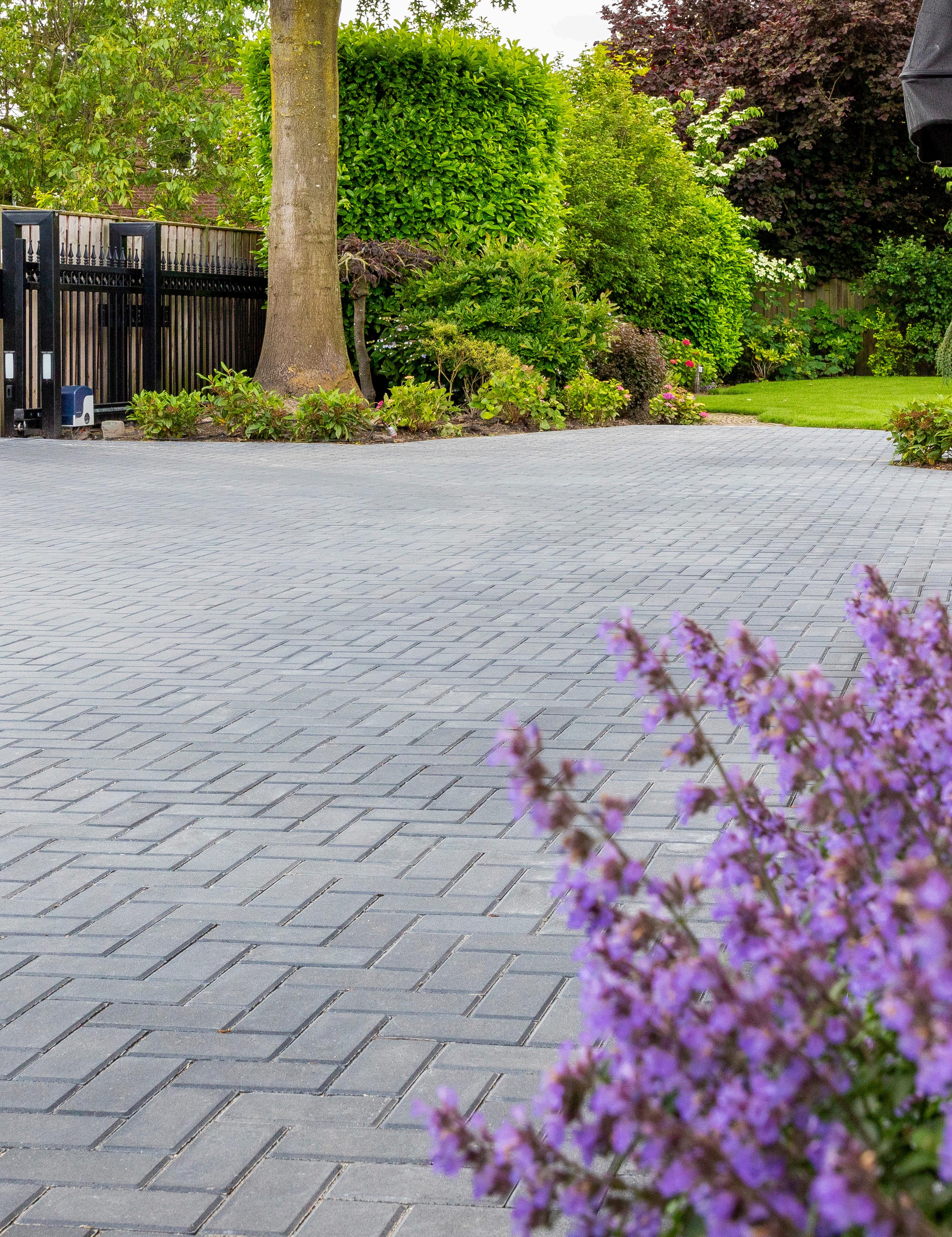 In combinatie met duurzame LED-verlichting komt deze bestrating optimaal tot zijn recht.