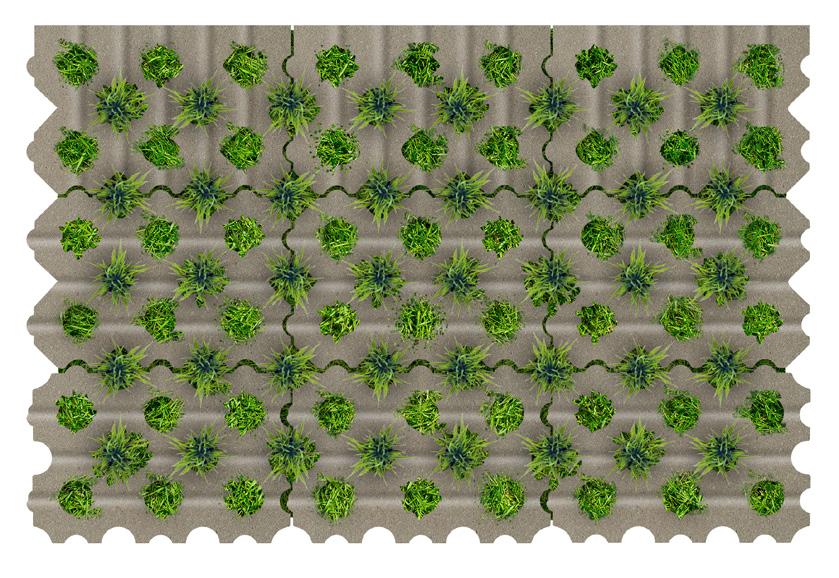Grasbetonplaat Flow geeft openbare ruimtes, campings, groenvoorzieningen en parkeerterreinen een eigentijdse, groene uitstraling. Dankzij de open constructie integreert Flow moeiteloos met de natuurlijke omgeving en bevordert hij waterinfiltratie en begroeiing. De gewapende uitvoering maakt deze grasbetonplaten uitermate geschikt voor opritten en parkeerterreinen met verkeersbelasting. Met keuze uit diverse open en gesloten structuren creëer je eenvoudig een ontwerp dat past bij jouw project.