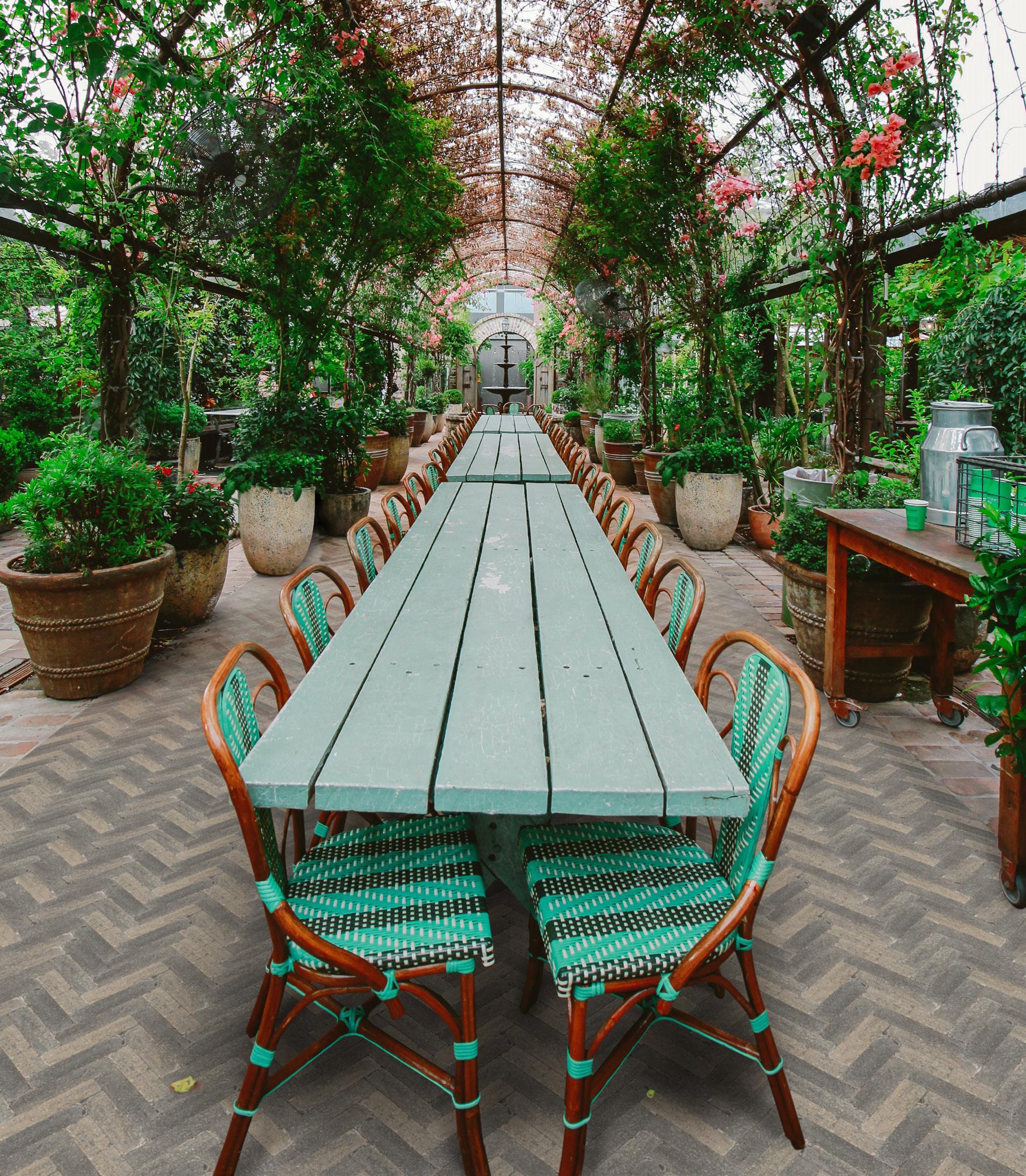 Creëer een stijlvolle tuin door de decor tegels te combineren met nuance tegels in dezelfde kleur.