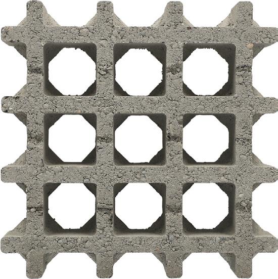 Gilt für Fliesen mit einer Dicke von 4 cm oder weniger und für einige Produkte mit einer Dicke von 6 cm. Die abgebildeten Fliesen sind etwa 30% leichter als herkömmliche Betonfliesen.