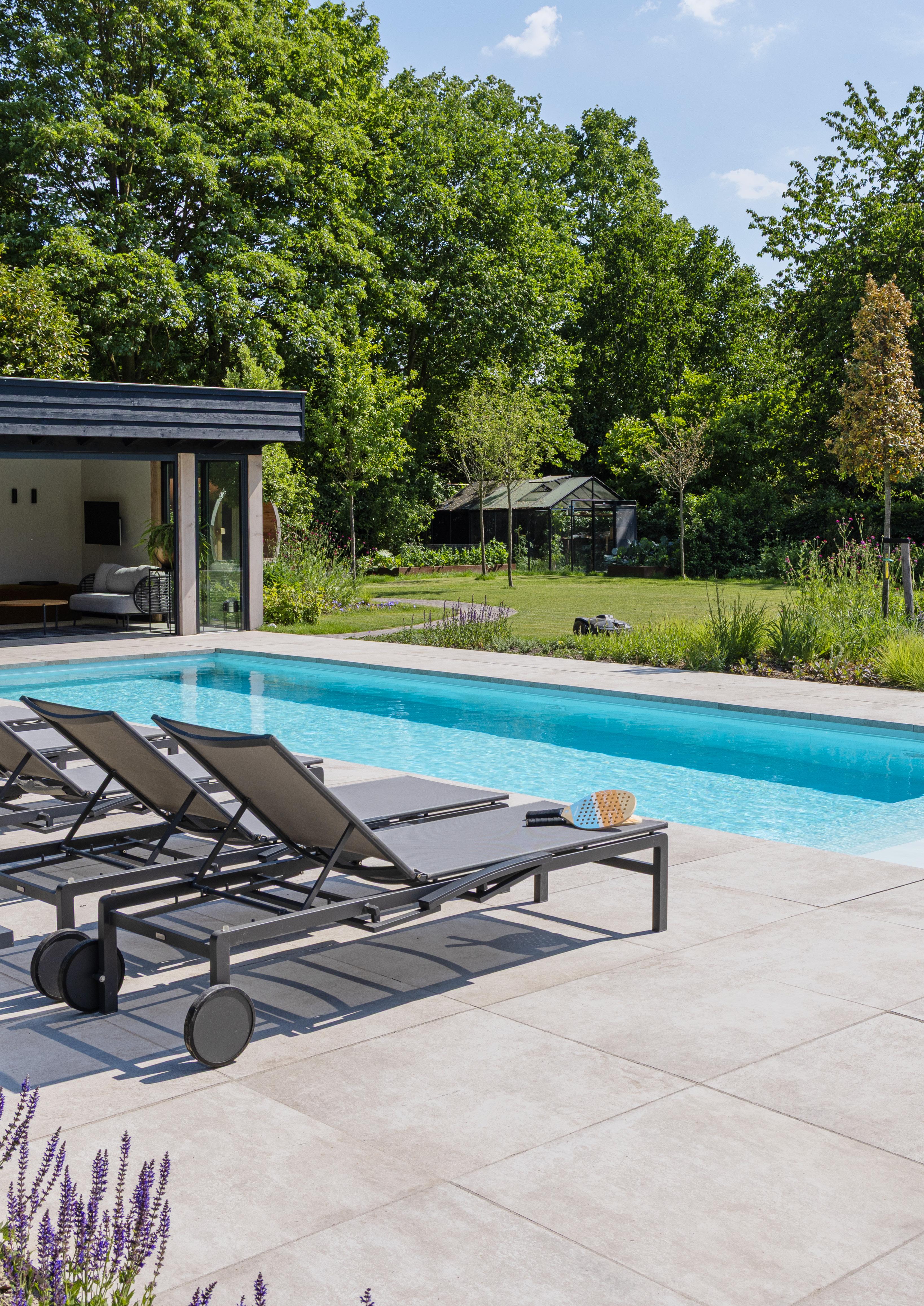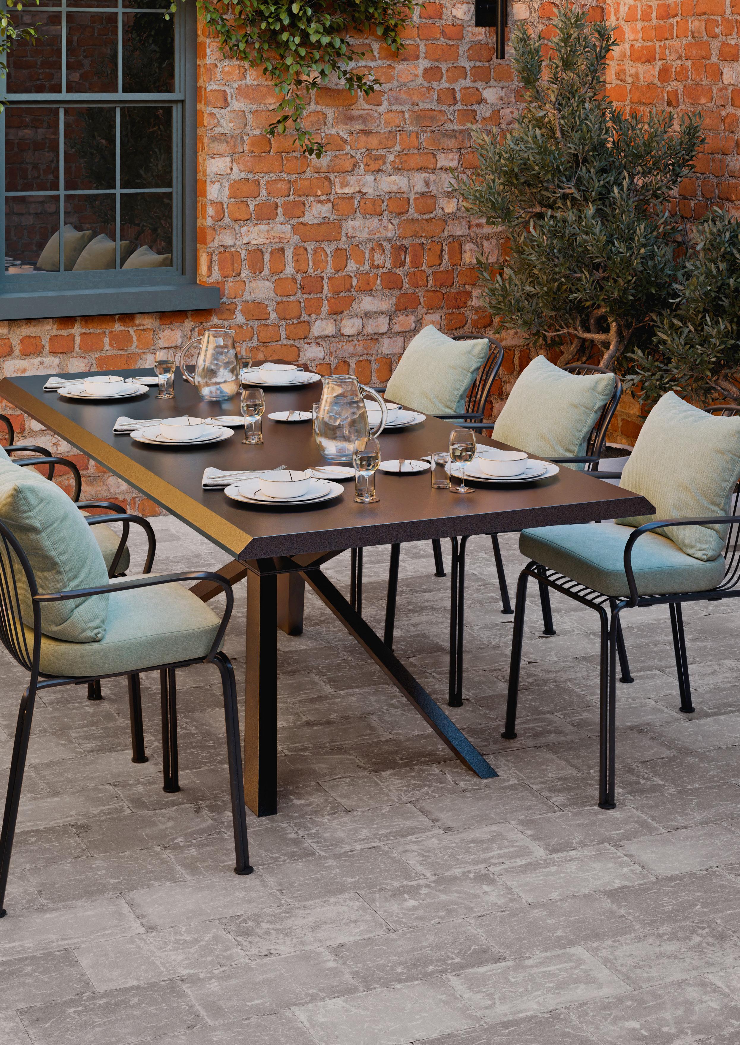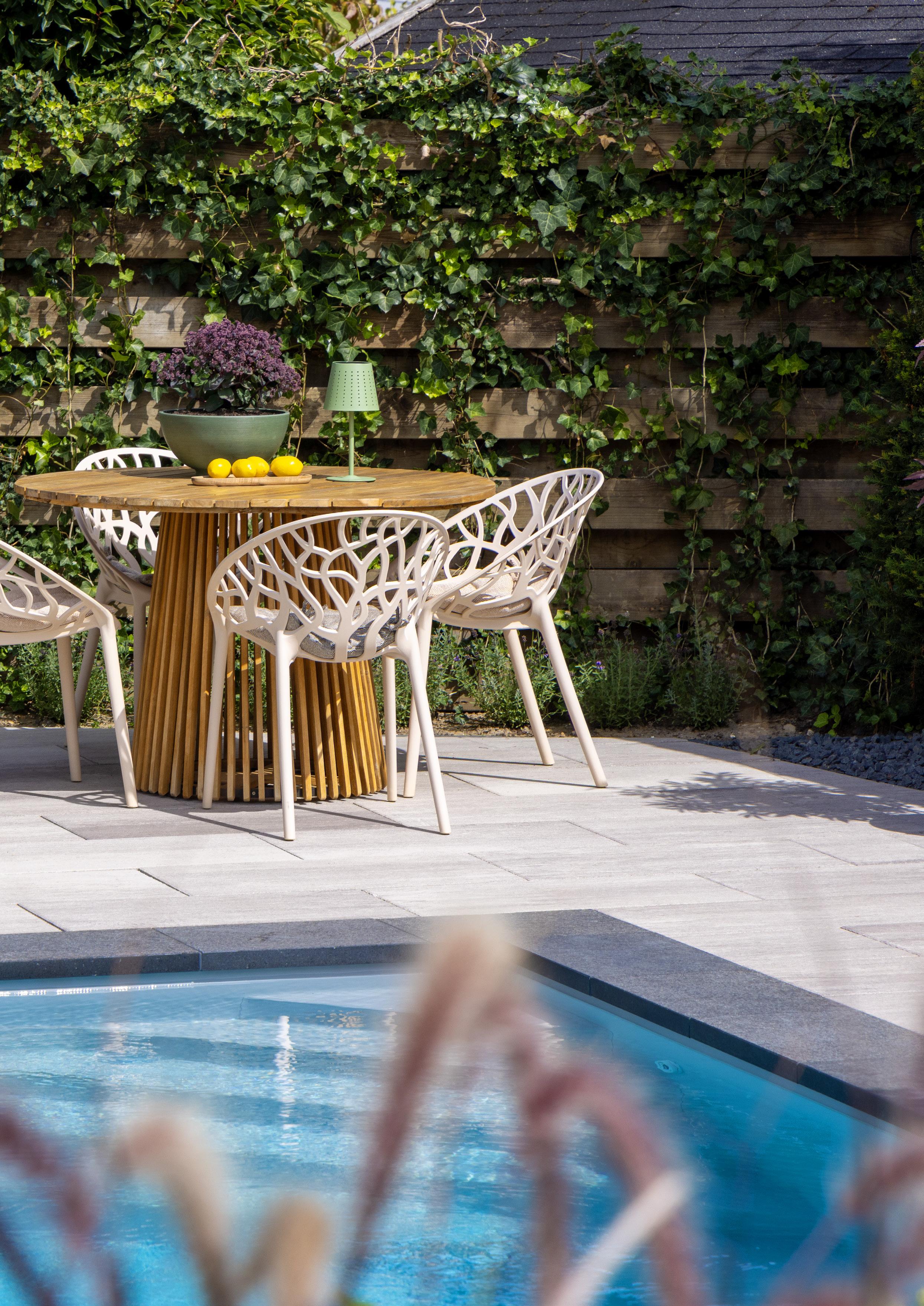 Elegance kombiniert ein hochwertiges Design mit einer klaren, raffinierten Oberfläche. Das ruhige, elegante Erscheinungsbild bildet eine stilvolle Grundlage für Terrassen und andere Außenbereiche und passt perfekt zu einer modernen, luxuriösen Gartenarchitektur.