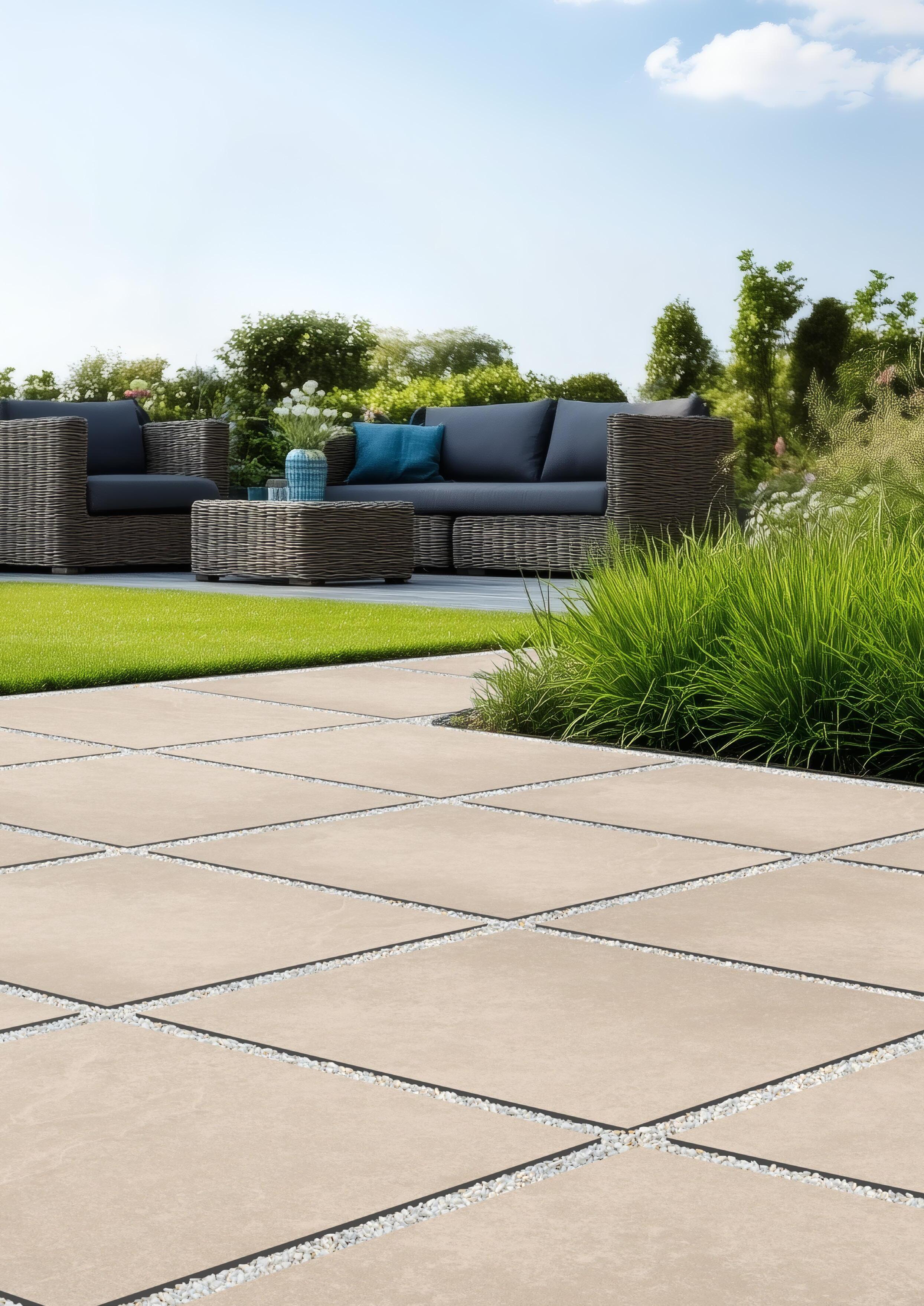 Dank der Rutschfestigkeit, Frostbeständigkeit und den integrierten Abstandhaltern legen Sie ein haltbares und gleichmäßiges Muster, das über Jahre hinweg schön bleibt. Zusätzliche Abwechslung finden Sie in den speziellen Randverarbeitungen und Nuancen der Formate 60 x 60 und 50 x 50 cm.