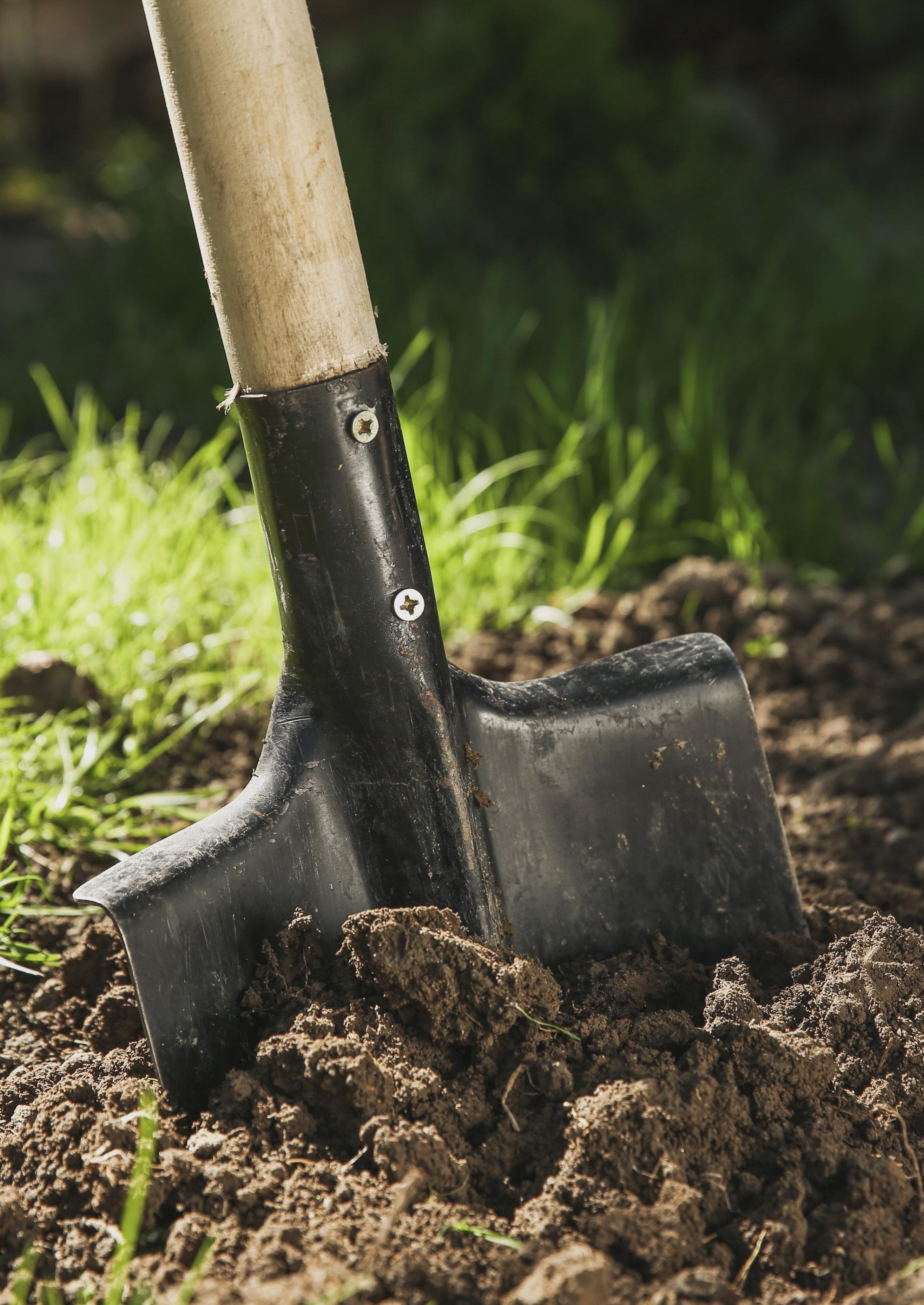 Die Schaufel für bessere Muskelarbeit. Diese verwenden Sie zum Ausheben einer Terrasse, eines Gehwegs oder einer Auffahrt.